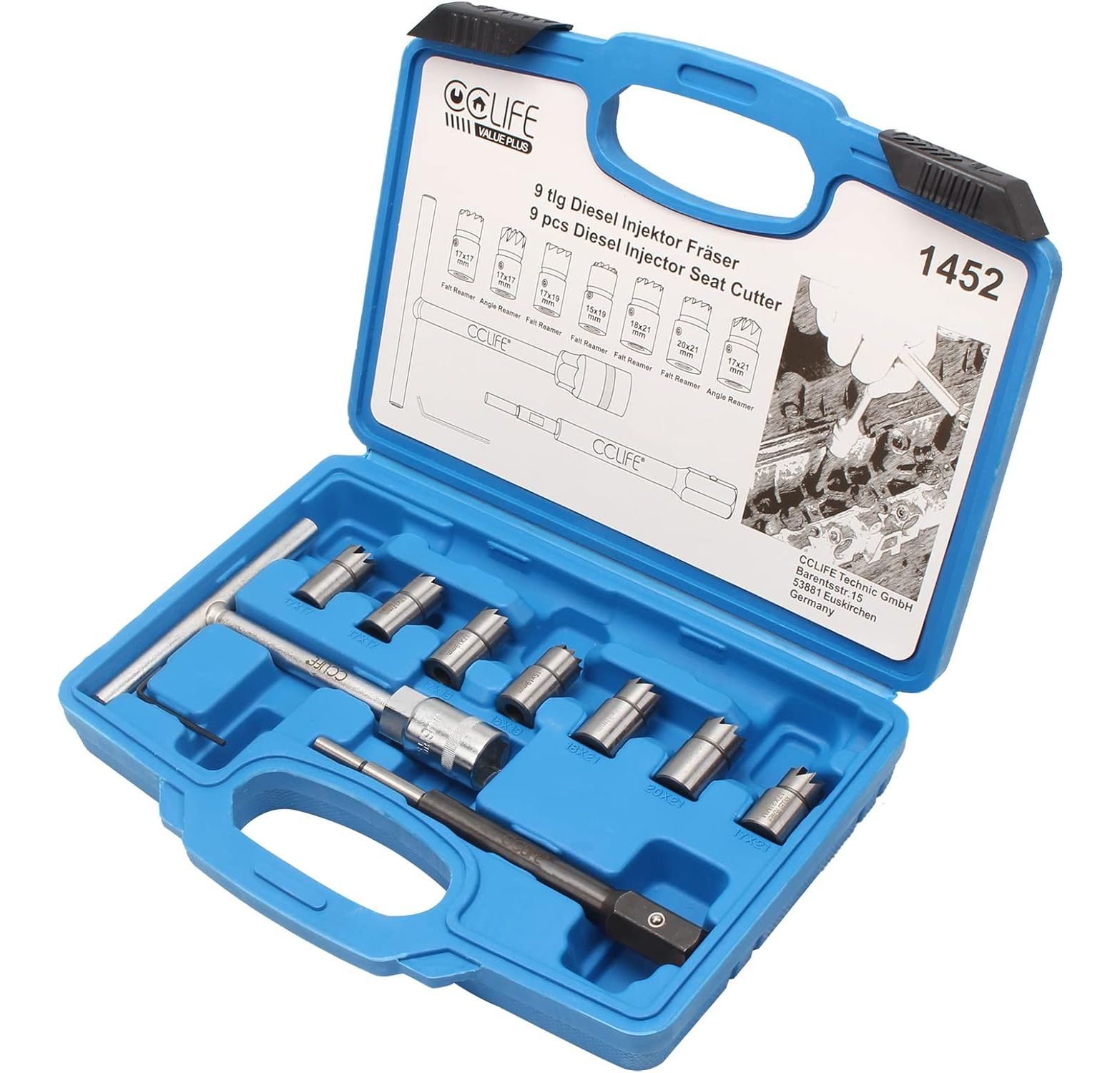 CCLIFE 10tlg Diesel Injektor Fräser Dichtsitzfräser Injektoren Inspritzdüsen Werkzeug mit 7 Fräsern
