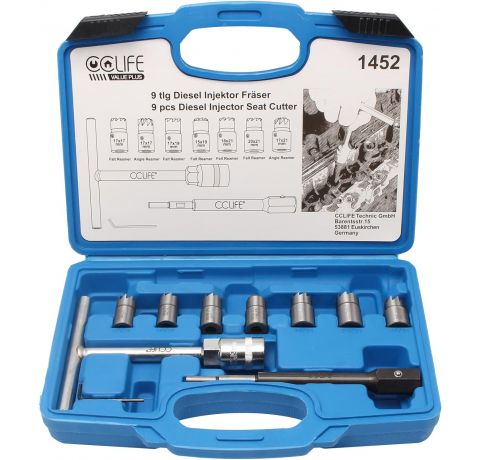 - Dieses Diesel Injektor-Fräserset eignet sich für die Reinigung und Ausbesserung der Dichtflächen an Injektoren und im Zylinderkopf