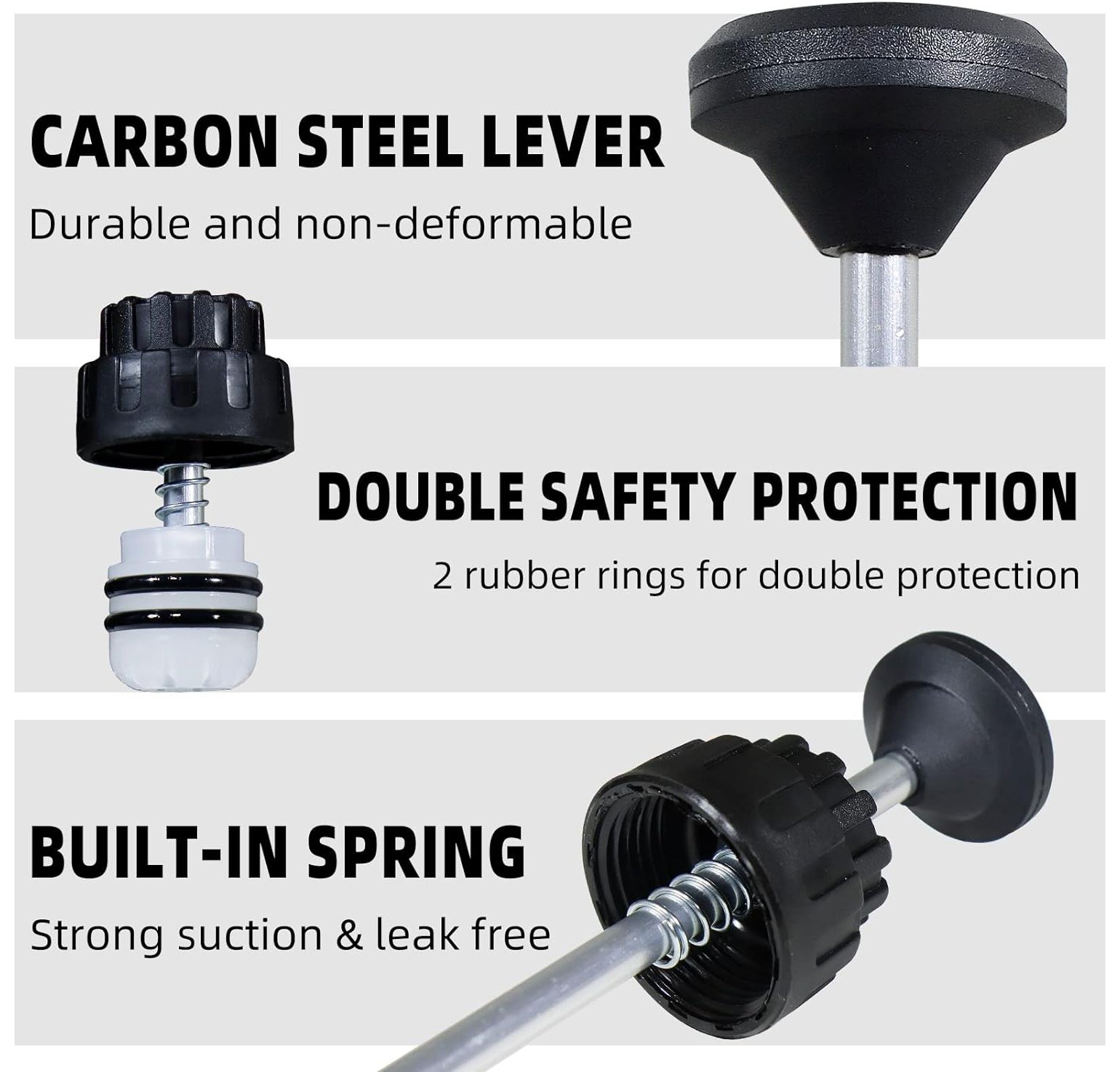 - Materialien: Die Ölabsaugpumpe besteht aus hochwertigem, solidem, langlebigem Material, die dicke Wand kann die Verschleißfestigkeit verbessern. Das eingebaute Doppelgummipad kann fest am Kolben montiert werden, um Leckagen zu vermeiden.