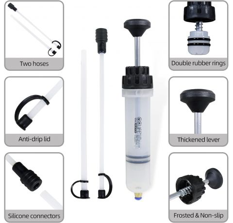 - Weit verbreitet: Ideal zum zum Entfernen und Befüllen von Motoröl, Getrieböl einschließlich chemikalienbeständiger Öle, Bremsflüssigkeit, Kühlmittel, Wasser usw.