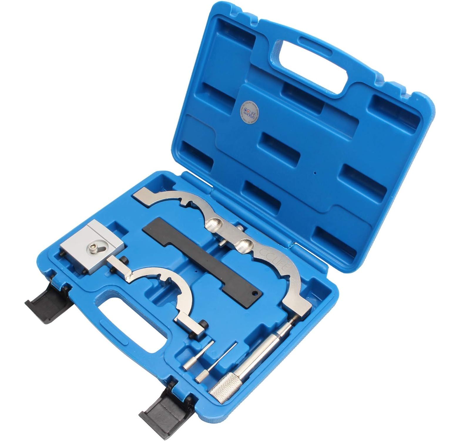 - Lieferumfang: Einstellwerkzeug für Nockenwellen-Sensorscheibe, Einstellwerkzeug für Einlassnockenwelle, Nockenwellensensor-Positionierungswerkzeug, Kettenspannerstift 4 mm, Riemenspannerstift 2,5 mm, 2 Nockenwellenarretierungen