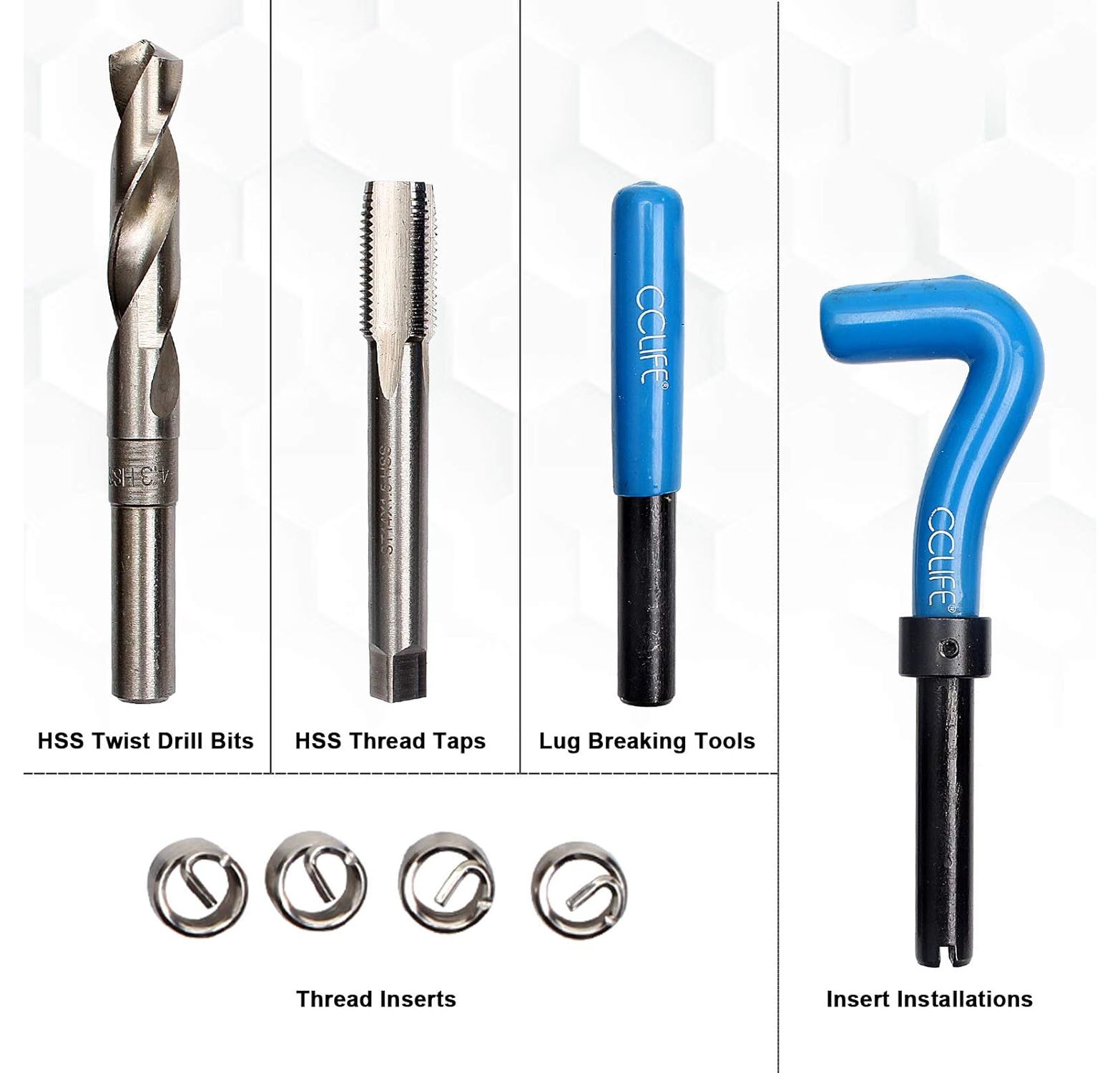 CCLIFE Gewindereparatur Gewinde Reparatur Satz M5 M6 M8 M10 M12 M14 zum Auswahl | Einsätze Hülsen, Größe:M14 X 1.5