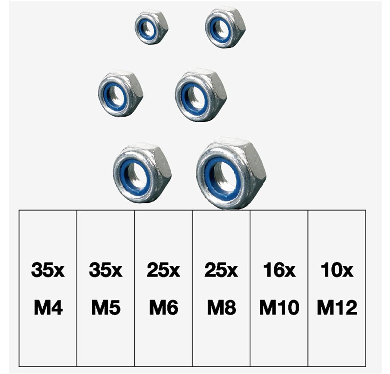 - Sortimentskasten enthalten: Praktischer Sortimentskasten für eine ordentliche Aufbewahrung und einfache Auswahl der Muttern.