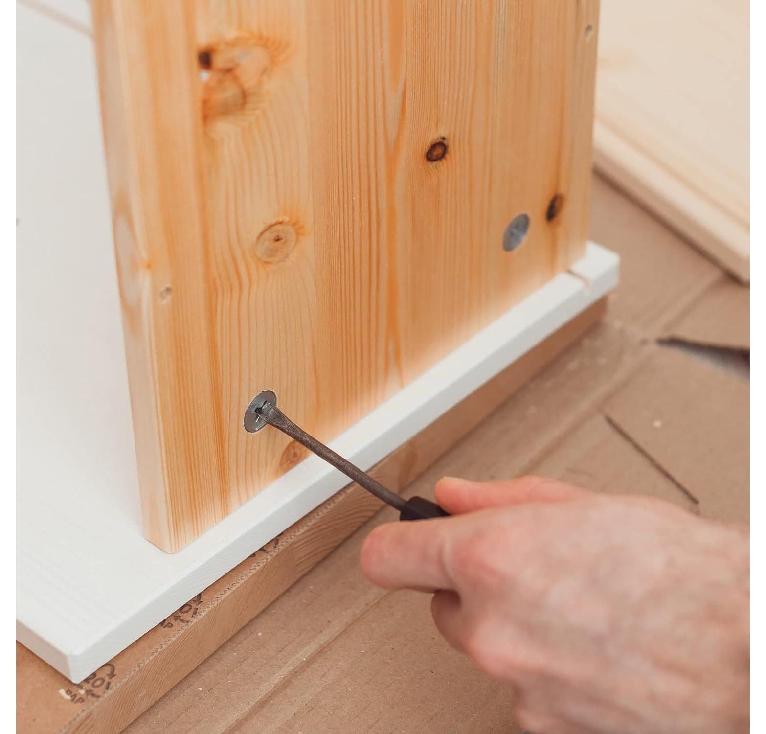 Der Senkkopf der verzinkten Schraube ermöglicht eine flächenbündige Versenkung im Werkstoff. Dadurch werden scharfe Kanten im Material verhindert und das Verletzungsrisiko verringert.