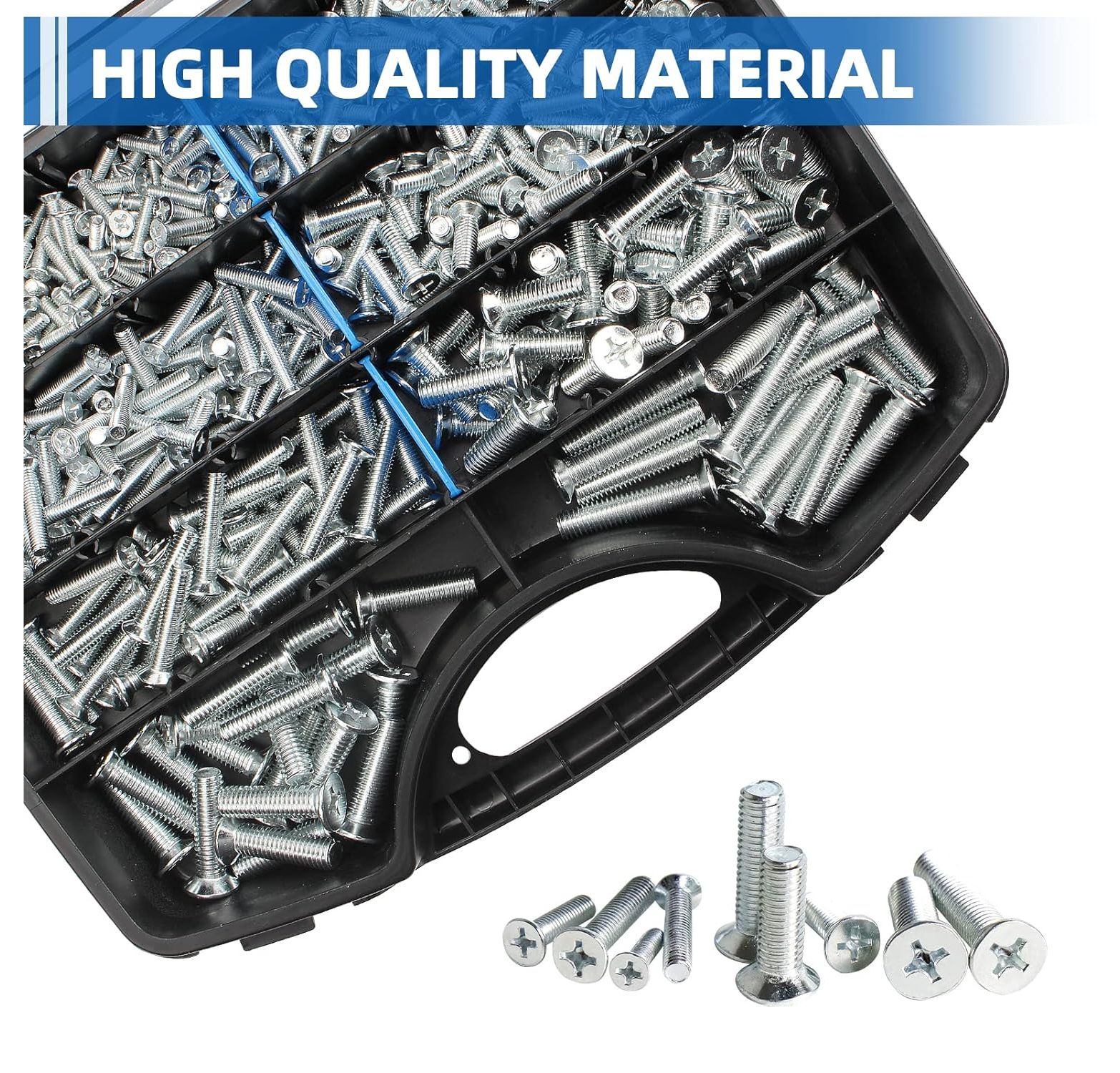 - Inhalt: Das Produkt enthält 425 Senkkopfschrauben, erhältlich in 8 Größen: M4 * 16 mm, M5 * 20 mm / 25 mm, M6 * 20 mm / 30 mm, M8 * 25 mm / 30 mm / 40 mm, verschiedene Größen können die Anforderungen des täglichen Gebrauchs erfüllen.