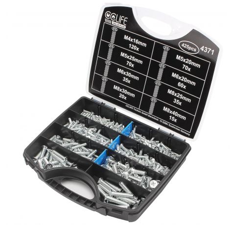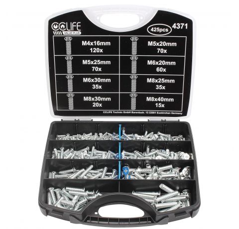 425tlg Senkkopfschrauben Sortiment mit 8 Größen verfügbar: M4*16mm; M5*20mm/25mm; M6*20mm/30mm; M8*25mm/30mm/40mm