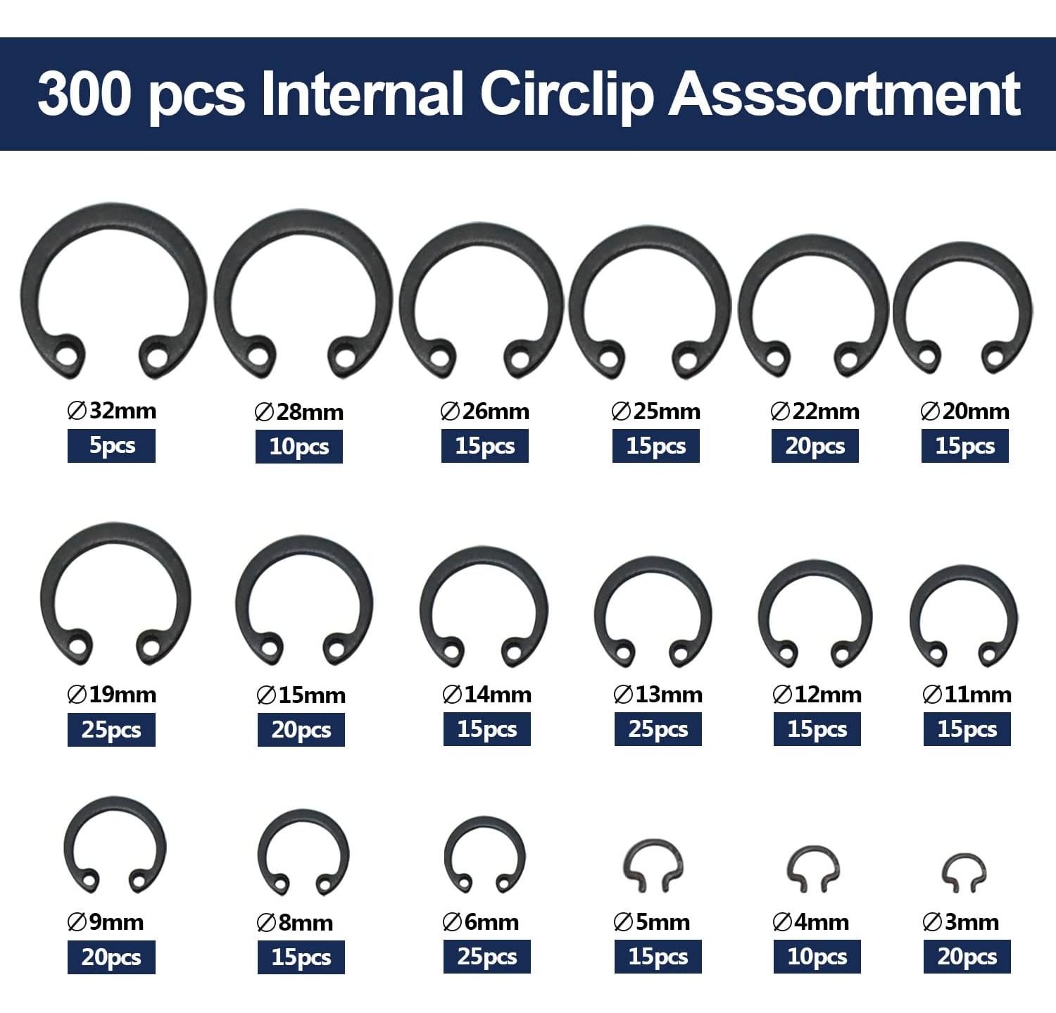 CCLIFE 300tlg Innen-Seegerring Ø 3-32 mm Sprengring Set Seegering Sortiment Sicherungsring für E-Clip