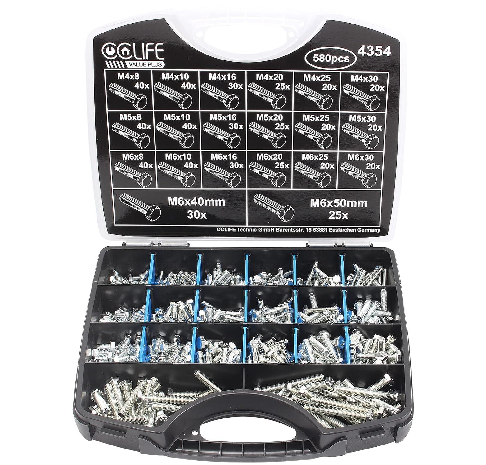 CCLIFE 580tlg Sechskantschrauben Set M4 M5 M6, 8-50mm, DIN 933 Verzinkt Sechskant Schrauben Vollgewinde