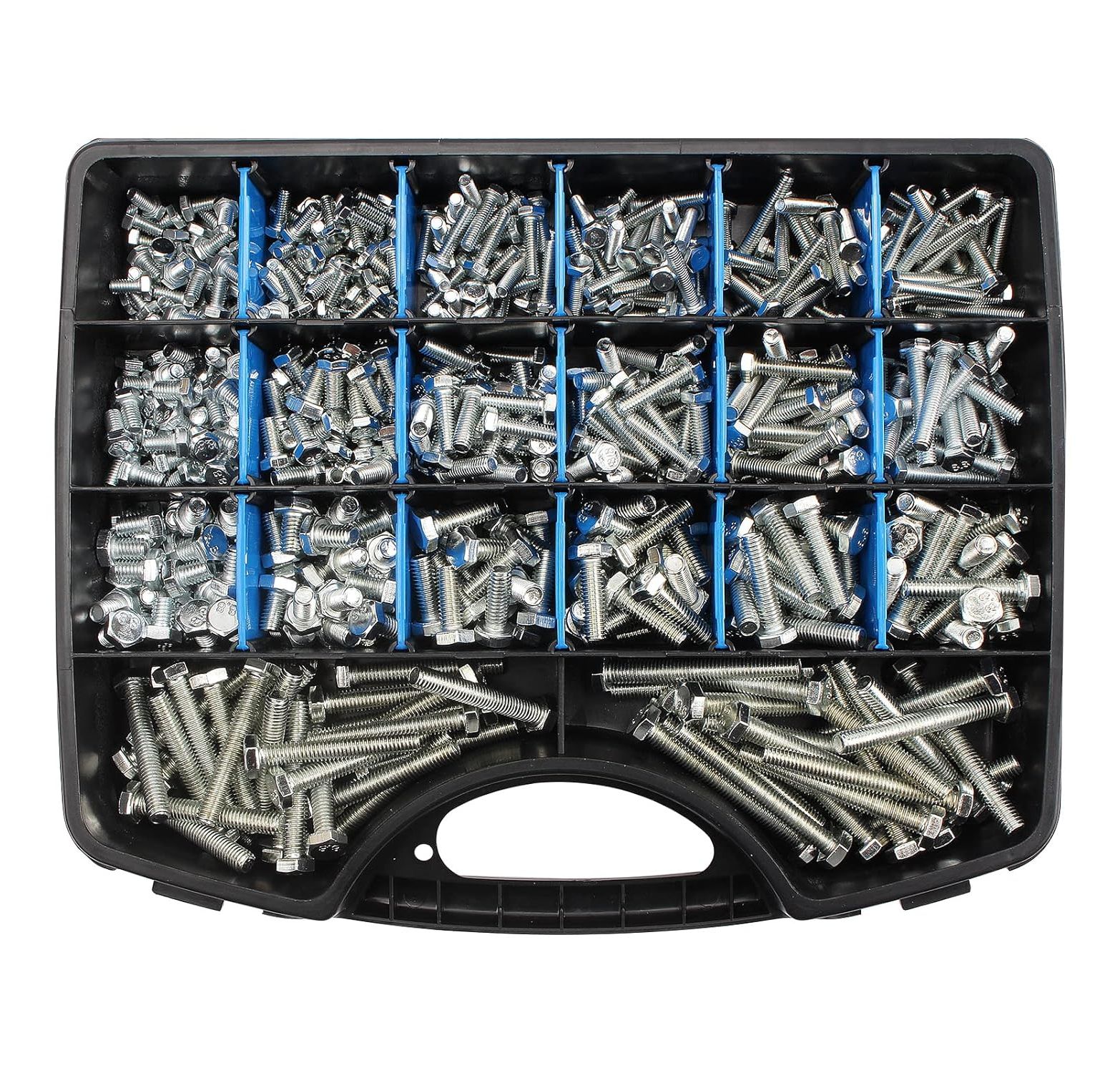 • Ordentlich: Alle Sechskantschrauben sind ordentlich in einem stabilen Kunststoffgehäuse mit Größenetiketten untergebracht, damit Sie so organisiert wie möglich bleiben.