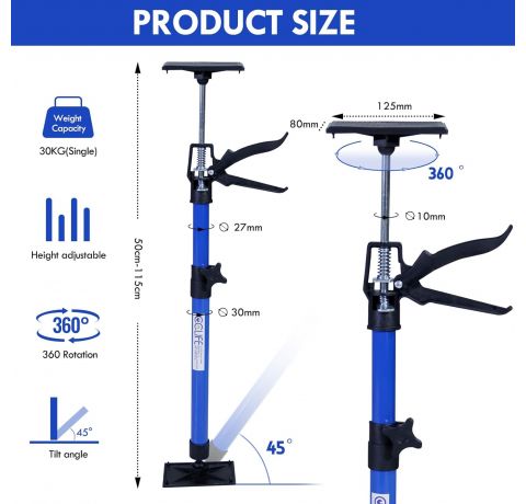 CCLIFE 2 Stk. Deckenstütze Montagestütze Einhandstütze 50-115 cm Belastbar Bis 30kg