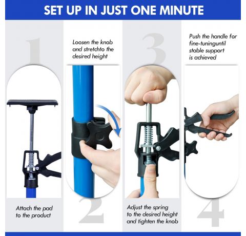 - Teleskopstütze (50-115 cm) mit einstellbarer Länge per Auszug und Pump-Mechanismus, Einhandbedienung, belastbar bis 30 kg.