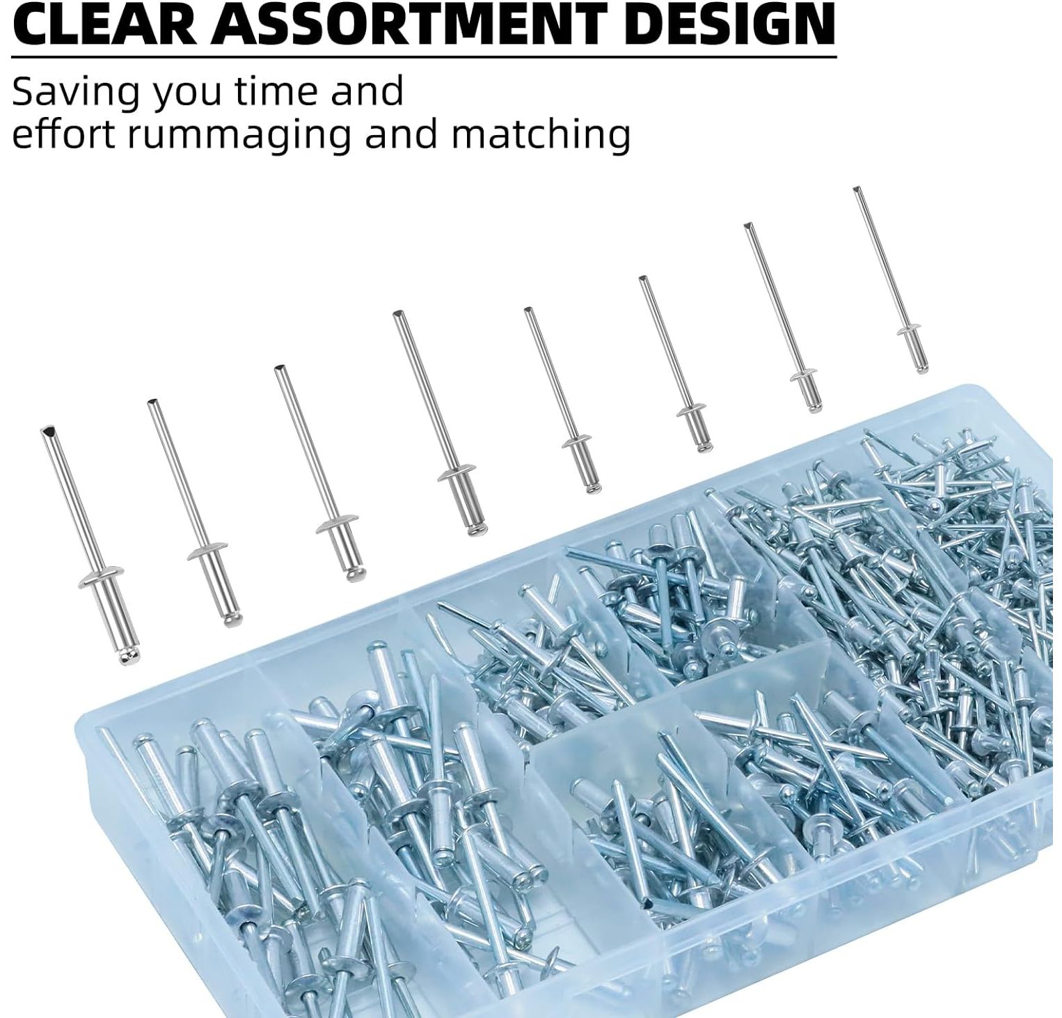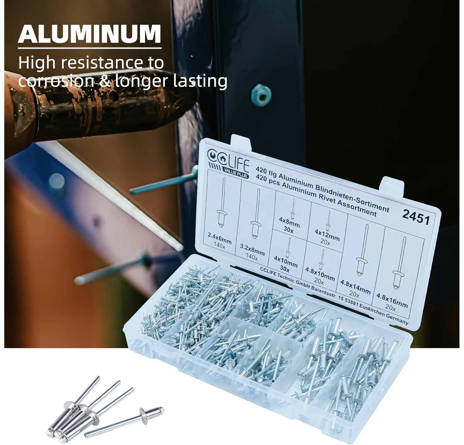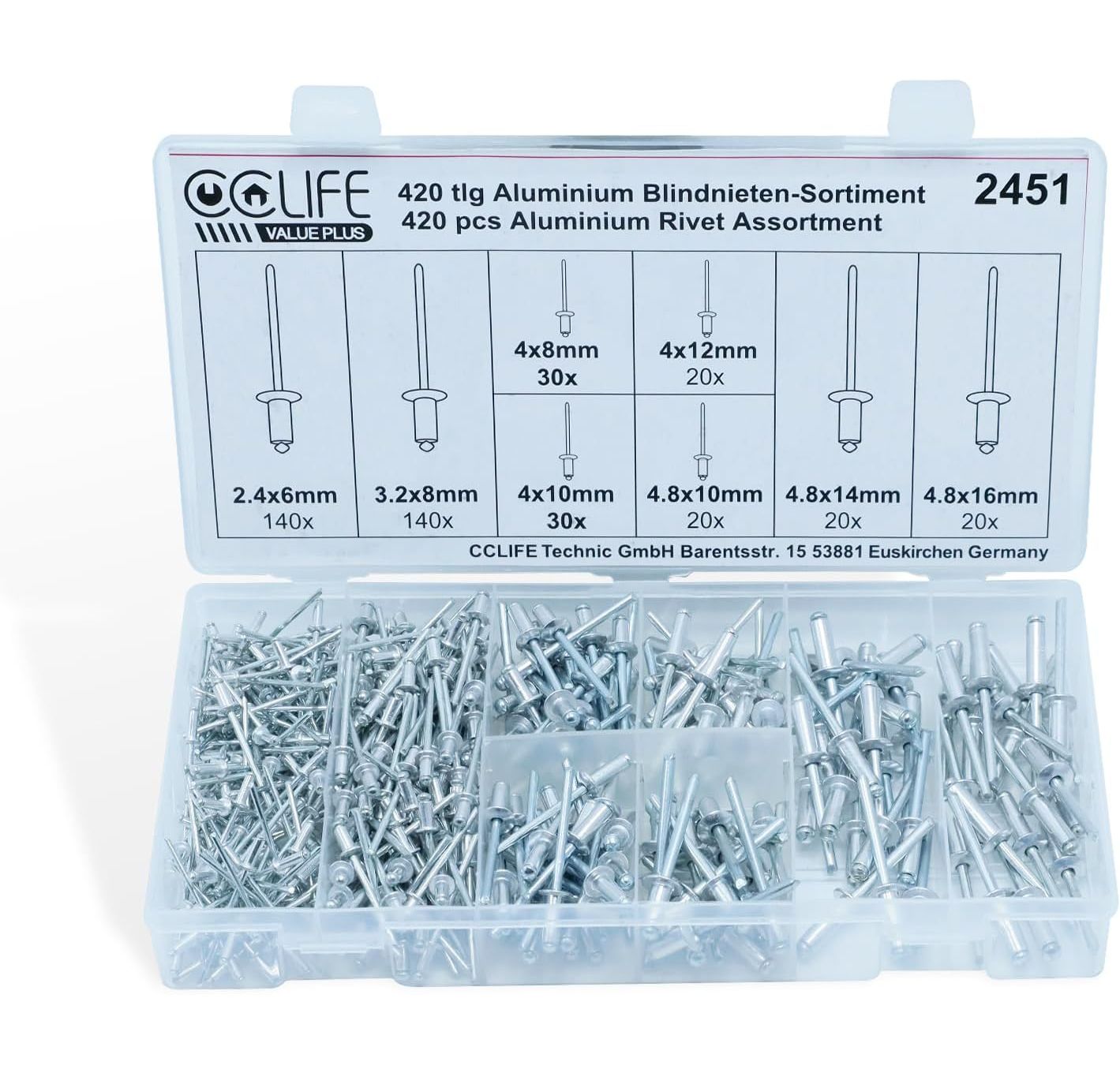 CCLIFE 420 tlg Alu Blindnieten Sortiment Popnieten Set Pop Nieten Stahlniete 2,4 3,2 4 4,8