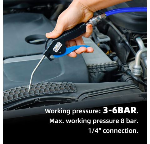 - Einfache Installation: Die Luftdüsen-Blaspistole mit einem schnell drehbaren 1/4-Zoll-Anschluss lässt sich einfach am Luftkompressor befestigen.