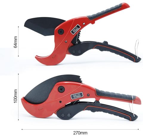 CCLIFE pvc Rohrschneider für Kunststoffrohre, Kunststoff Rohrabschneider Mit Ratschen 64mm von PVC/PE/PP/PEX/PPR