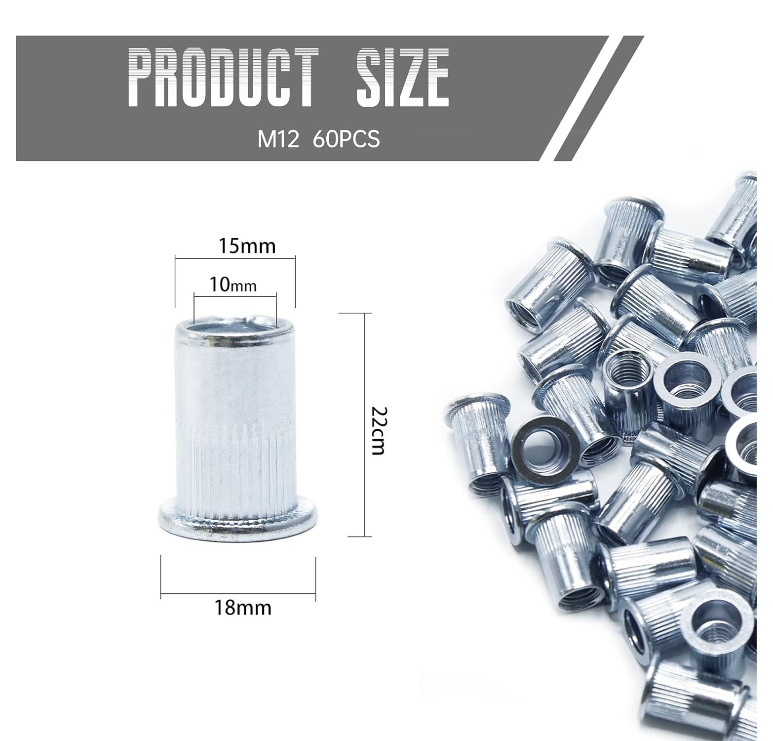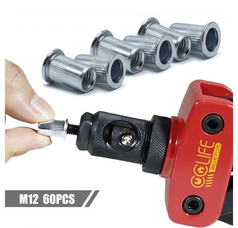 CCLIFE 60 Stück M12 Nietmuttern und Blindnietmuttern Set, 18mm x 22mm, verzinkter Kohlenstoffstahl - Ideale Befestigung für Stahl, Glasfaser und Kunststoff