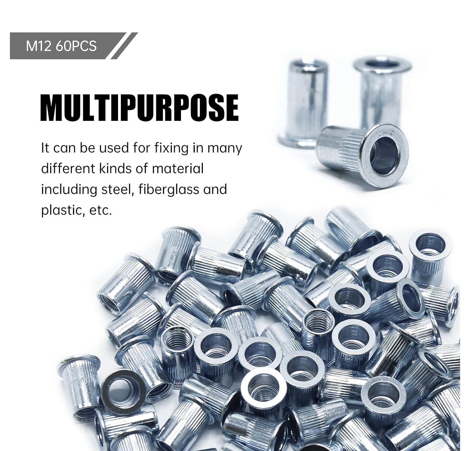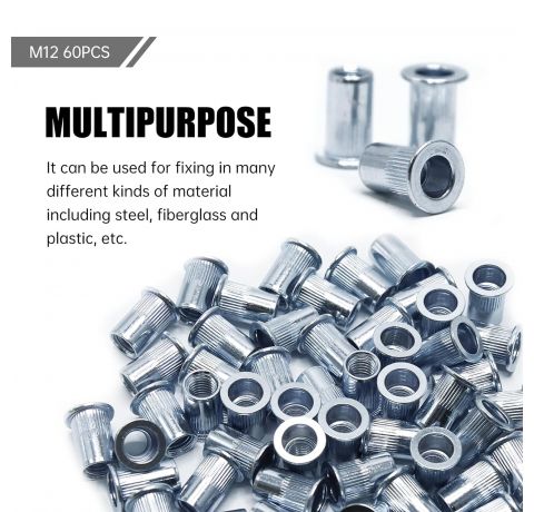- Vielseitige Anwendung: Dieses Set mit 60 M12 Nietmuttern und Blindnietmuttern eignet sich ideal für eine breite Palette von Anwendungen, einschließlich der sicheren Befestigung von Stahl, Glasfaser und Kunststoff.