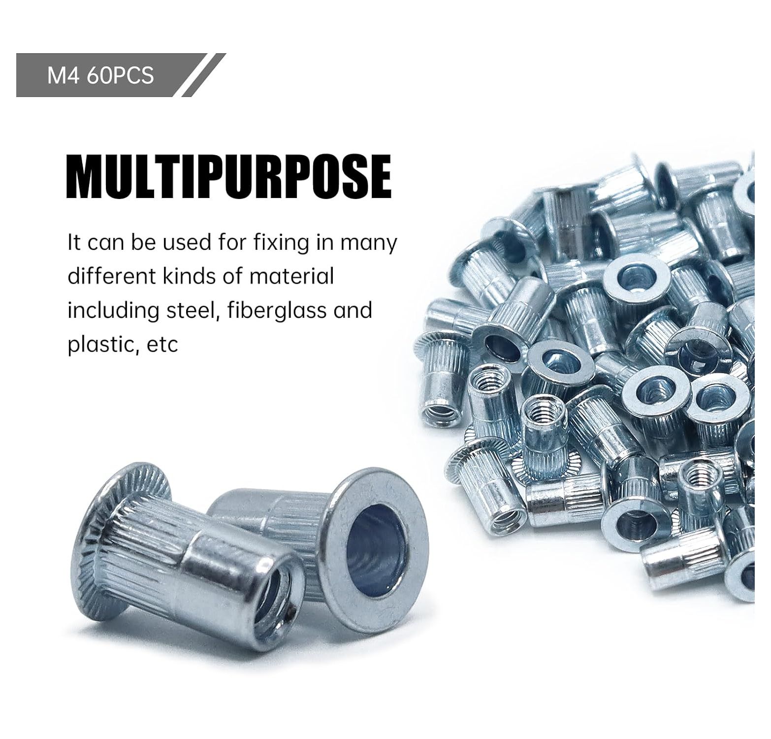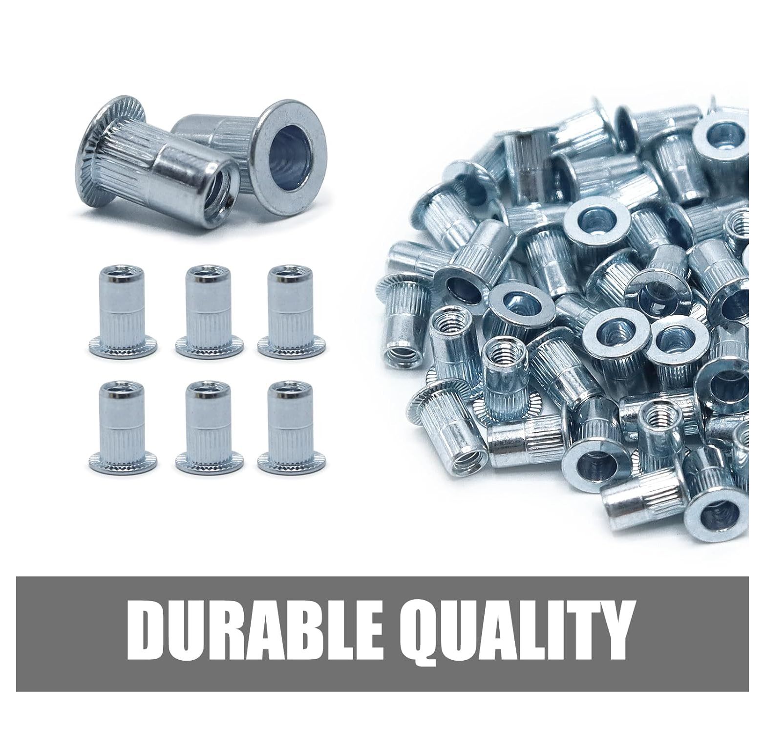 - Erstklassiges Material: Unser Set aus M4 Nietmuttern und Blindnietmuttern besteht aus hochwertigem verzinktem Kohlenstoffstahl für eine zuverlässige und langlebige Befestigungslösung.