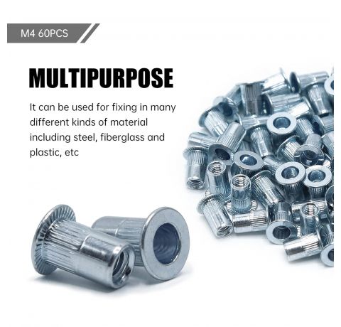 - Vielseitige Anwendung: Dieses Set mit 60 M4 Nietmuttern und Blindnietmuttern eignet sich ideal für eine breite Palette von Anwendungen, einschließlich der sicheren Befestigung von Stahl, Glasfaser und Kunststoff.