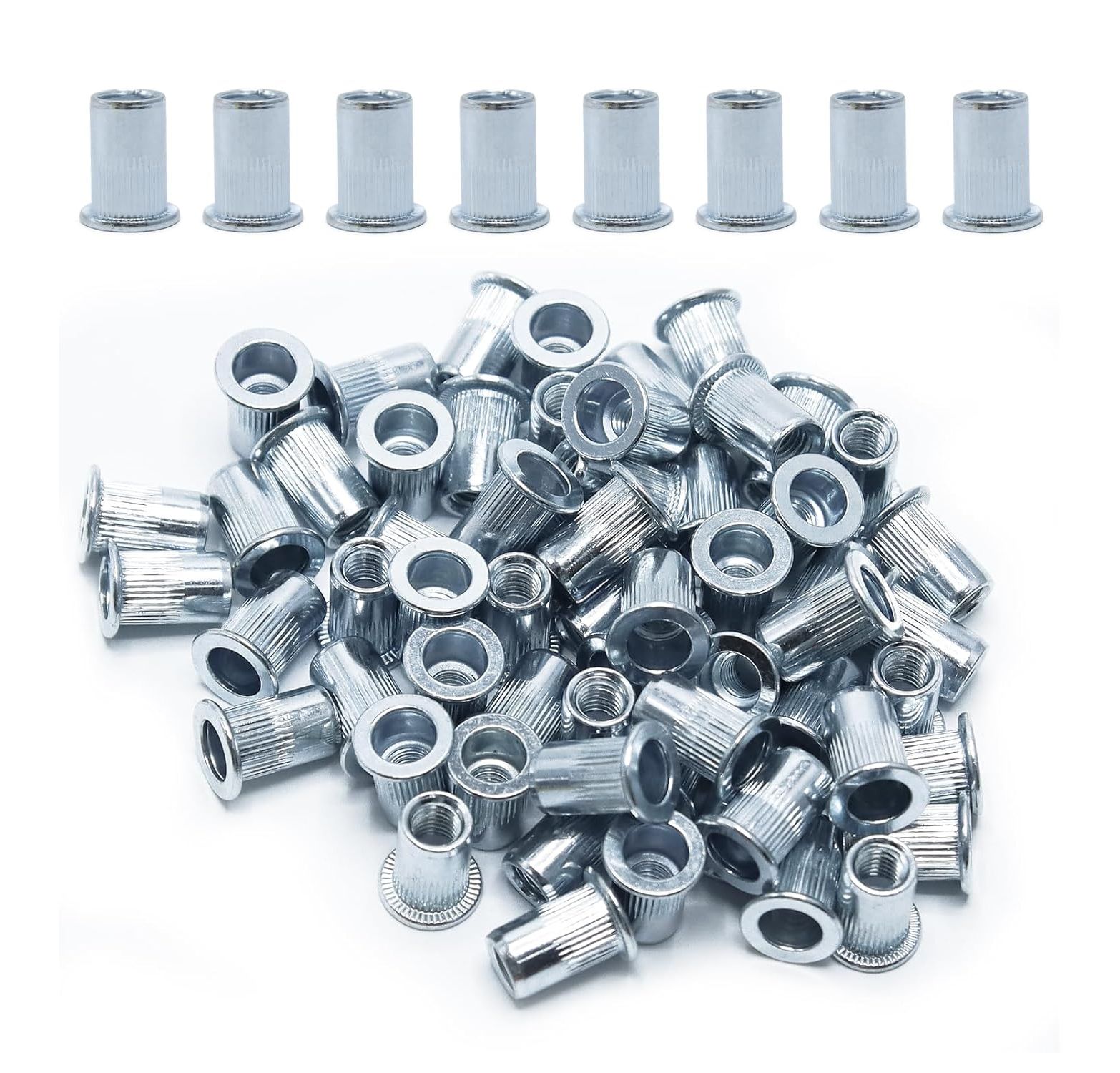 - Erstklassiges Material: Unser Set aus M6 Nietmuttern und Blindnietmuttern besteht aus hochwertigem verzinktem Kohlenstoffstahl für eine zuverlässige und langlebige Befestigungslösung.