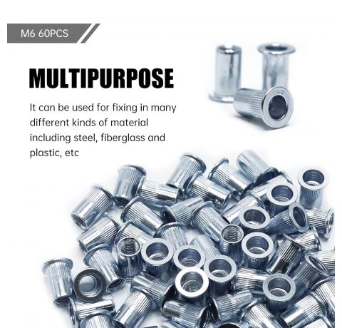 - Vielseitige Anwendung: Dieses Set mit 60 M6 Nietmuttern und Blindnietmuttern eignet sich ideal für eine breite Palette von Anwendungen, einschließlich der sicheren Befestigung von Stahl, Glasfaser und Kunststoff.
