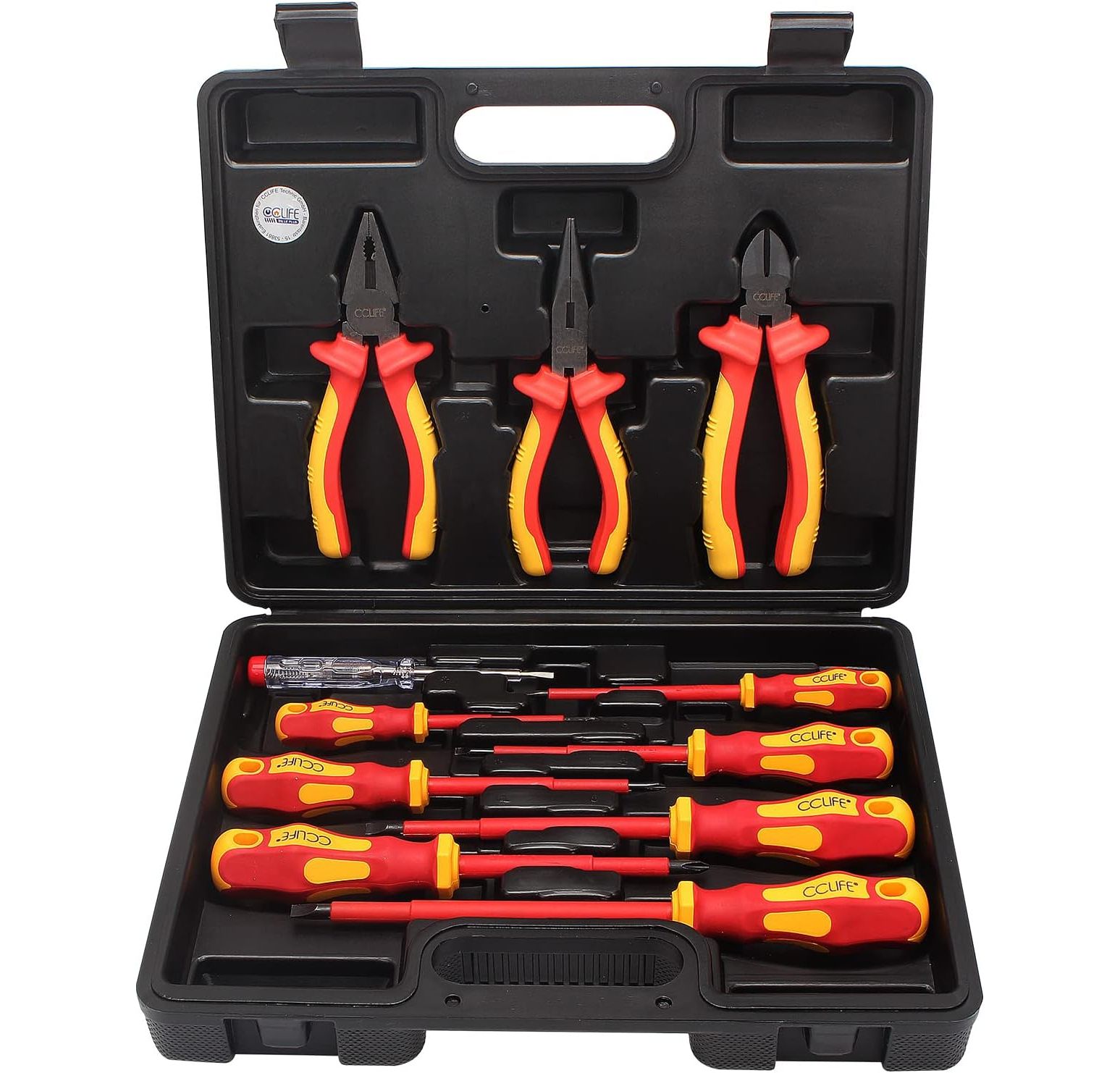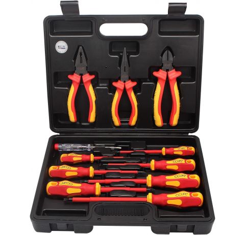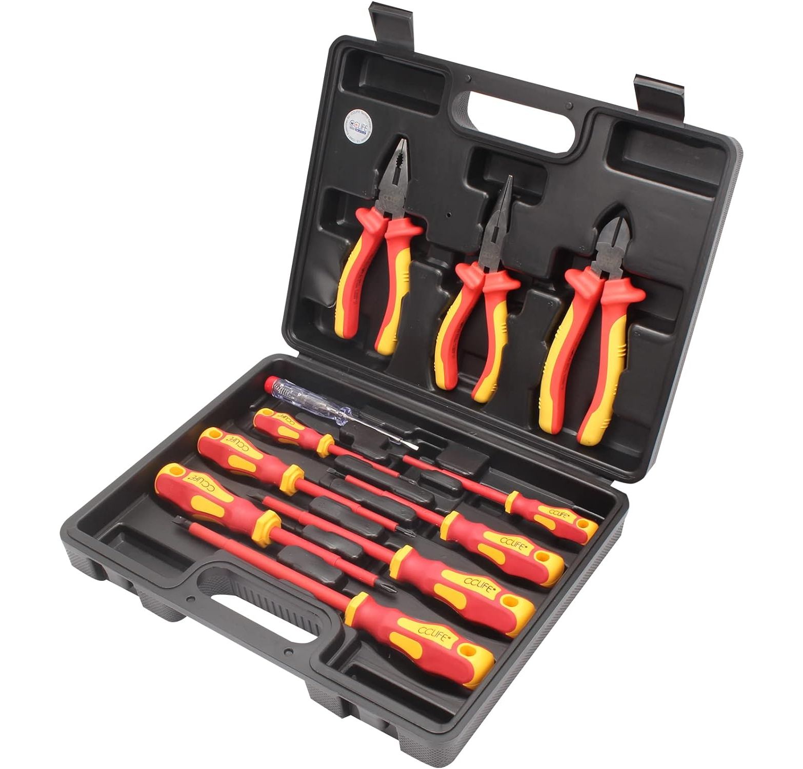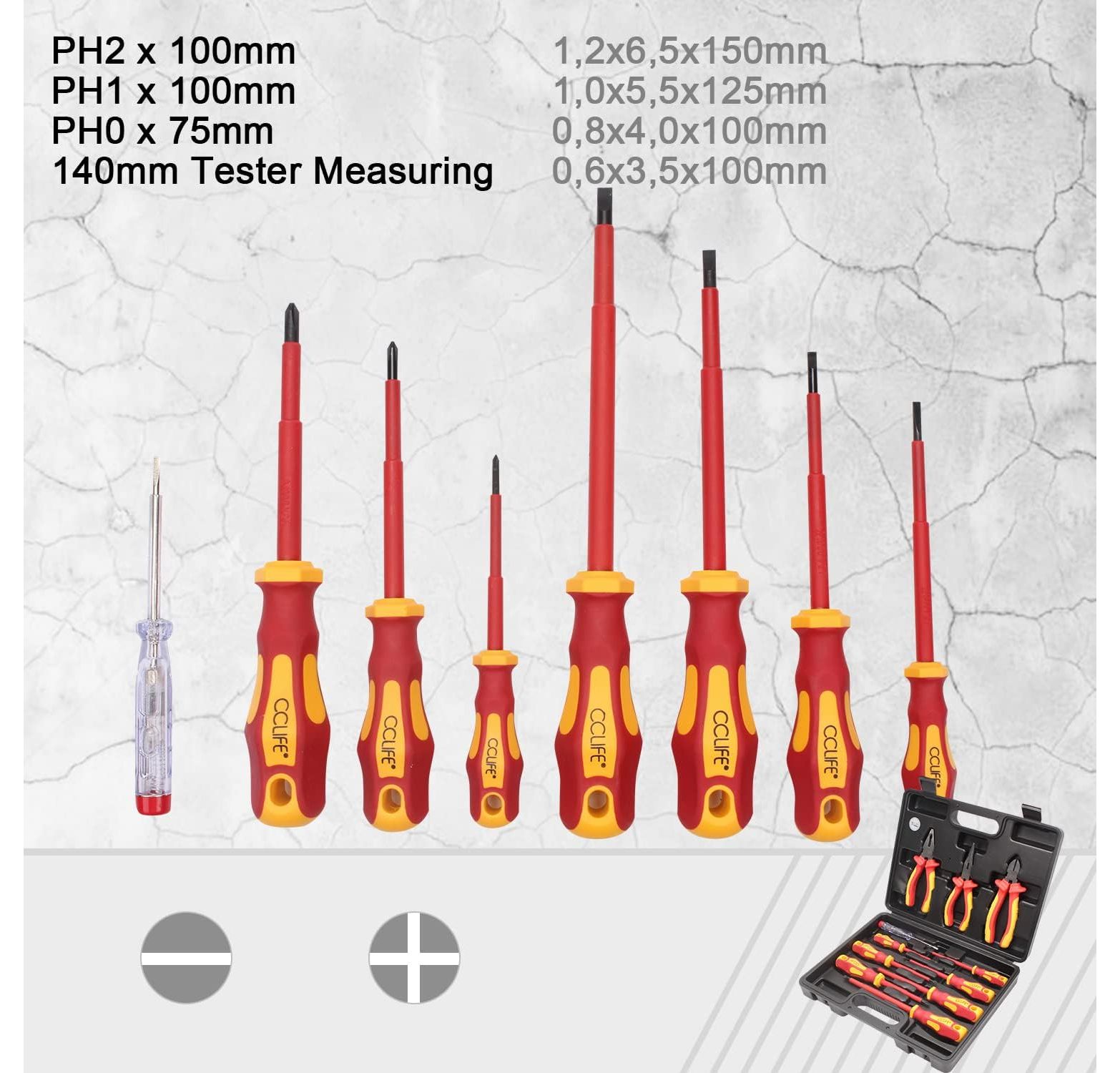 CCLIFE 11 tlg VDE Isolierter Schraubendreher Schraubenzieher Zange Set mit Spannungsprüfer Schlitz Philips