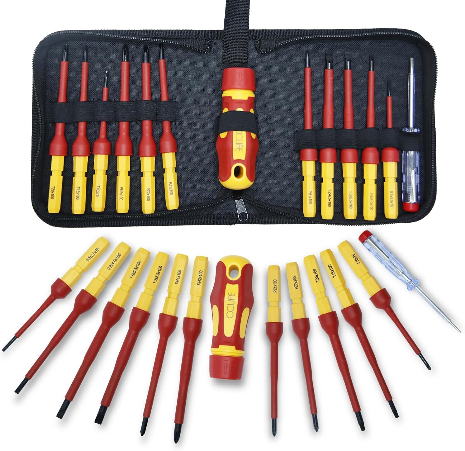 CCLIFE 13 tlg VDE Isolierter Schraubendreher mit Wechselklingen-Satz Magnetische Schraubenzieher inkl. Spannungsprüfer Schlitz & PH & PZ & Torx Set