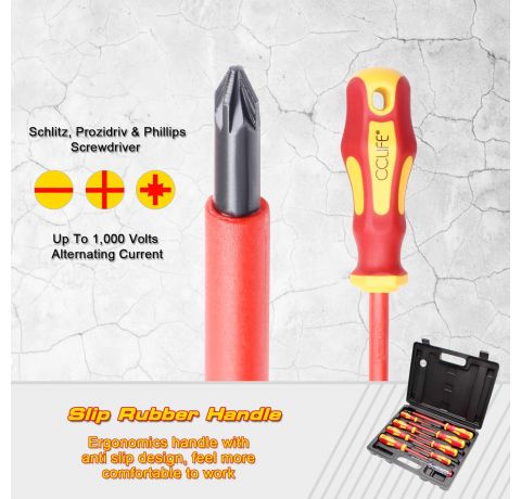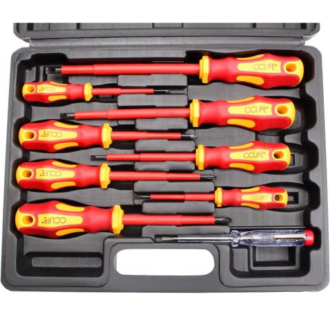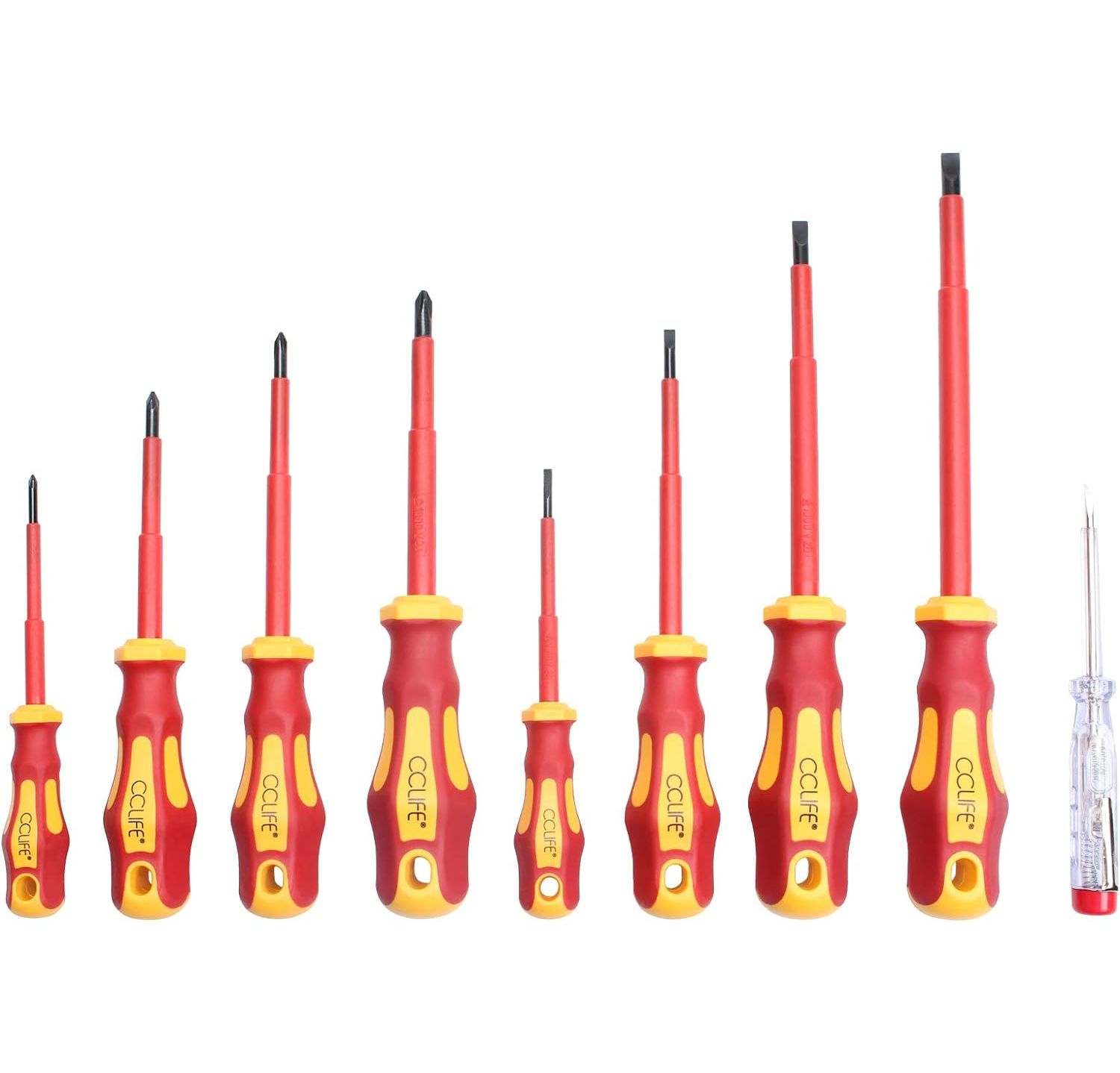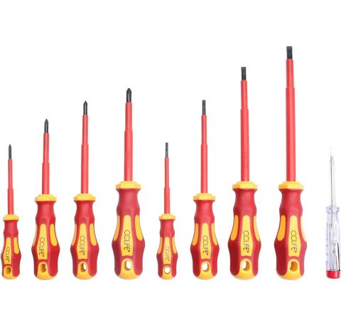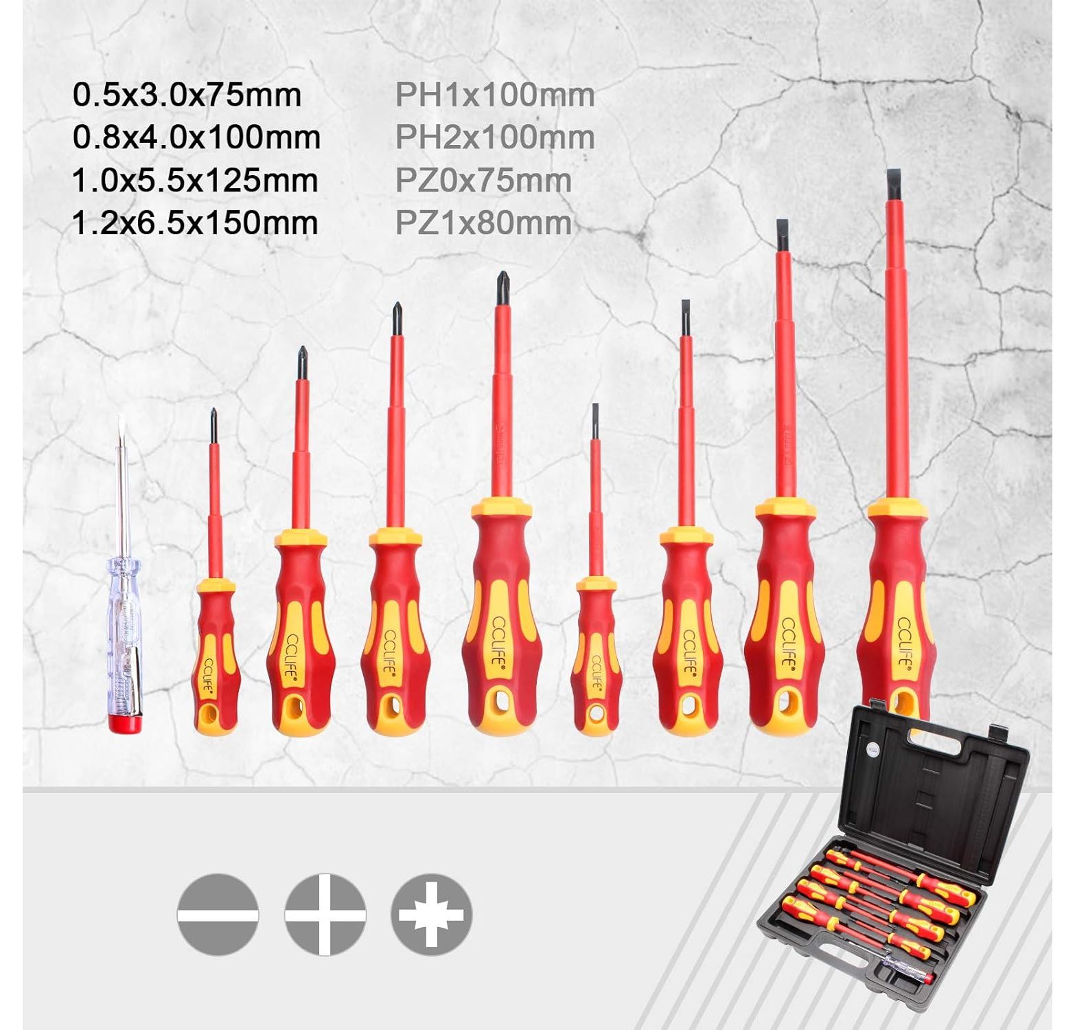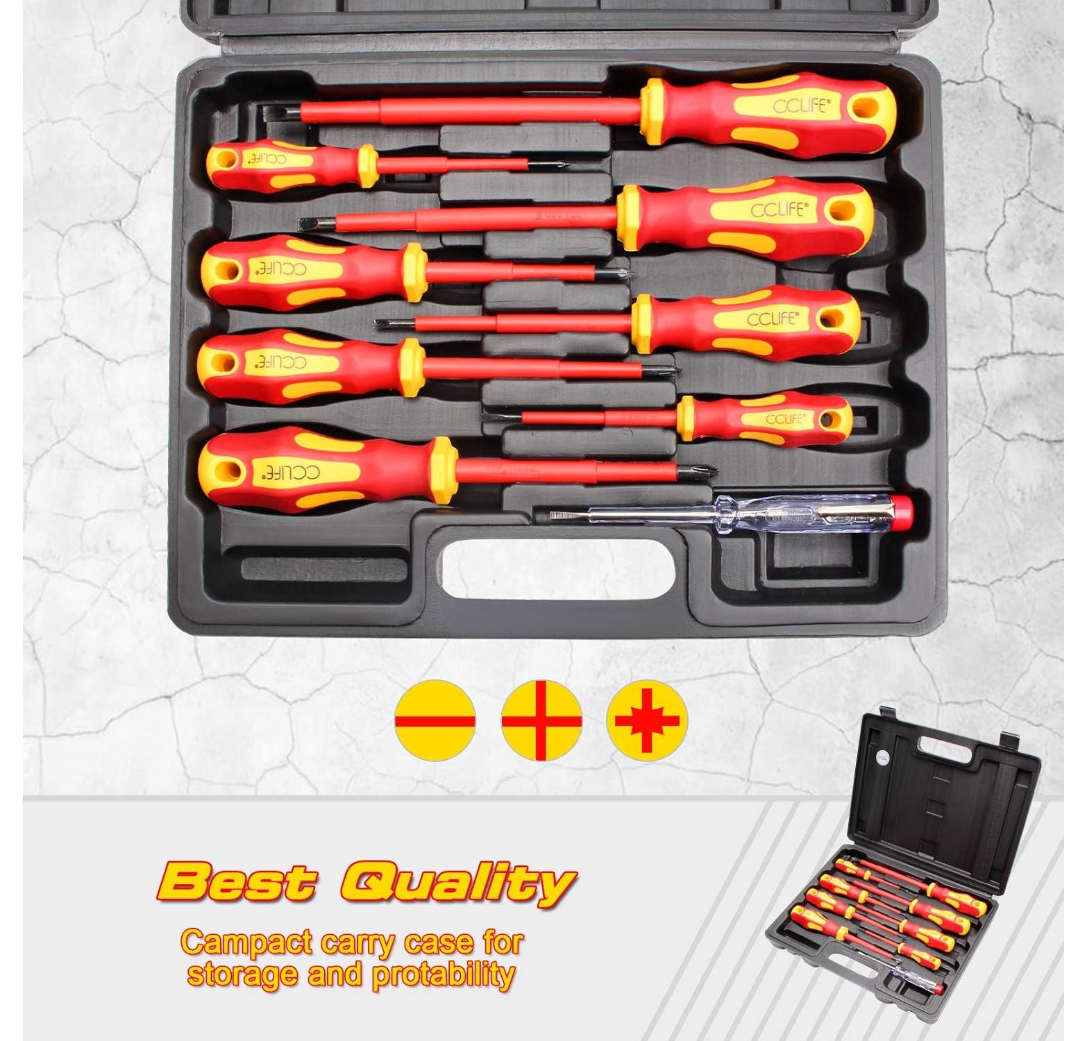 CCLIFE 9 tlg VDE Isolierter Schraubendreher Schraubenzieher Satz inkl.Spannungsprüfer Schlitz & PH & PZ Set