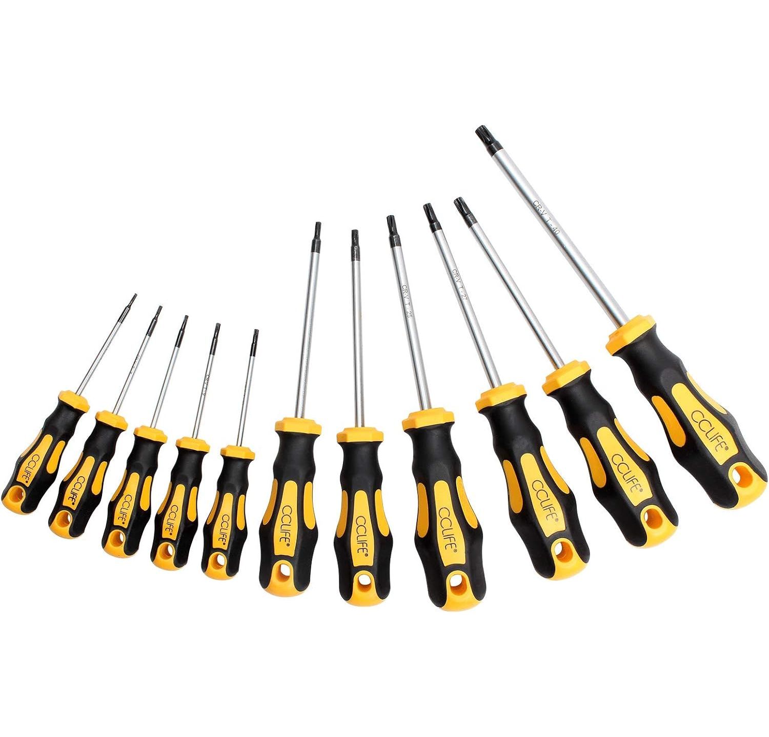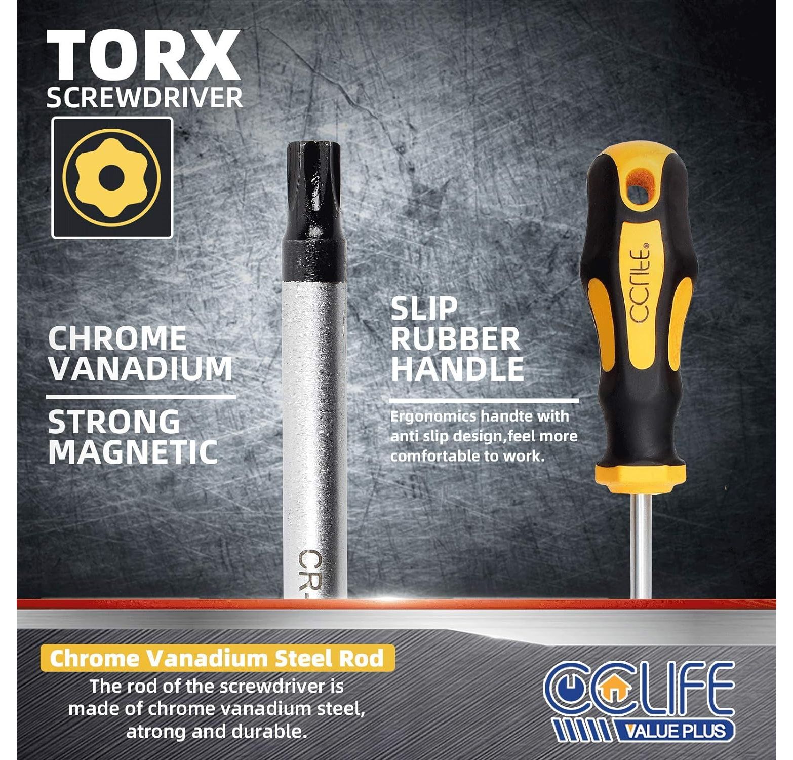 CCLIFE Torx Schraubendreher Set TX magnetisch T6-T40, 11 Stück mit Sternlochbohrung