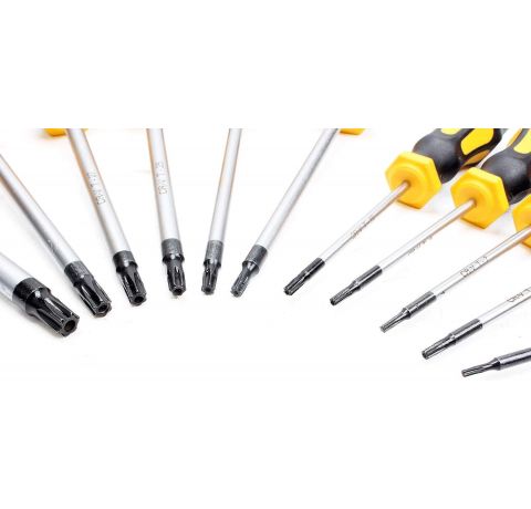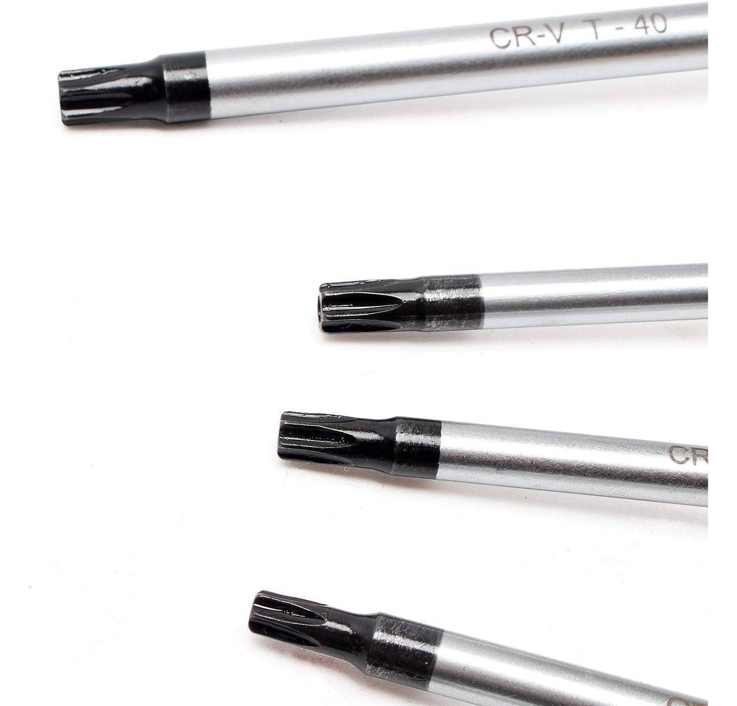 - Universal: Unser hochwertiger Torx-Schraubendrehersatz ist lang, magnetisch und alle gängigen Größen sind vorhanden, damit beim Verschrauben immer das passende Handwerkzeug da ist