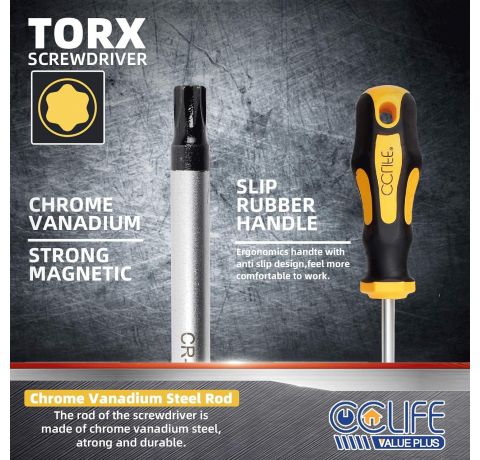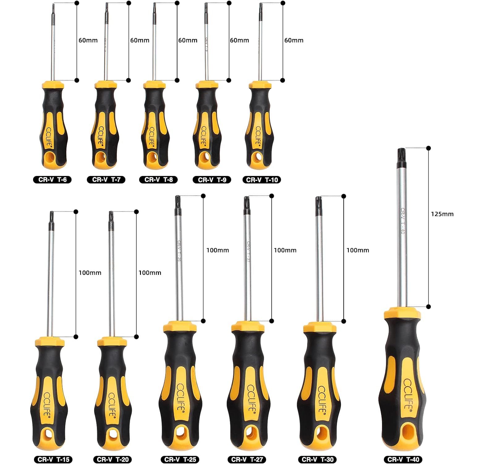 CCLIFE Torx Schraubendreher Set TX magnetisch T6-T40, 11 Stück Ohne Bohrung