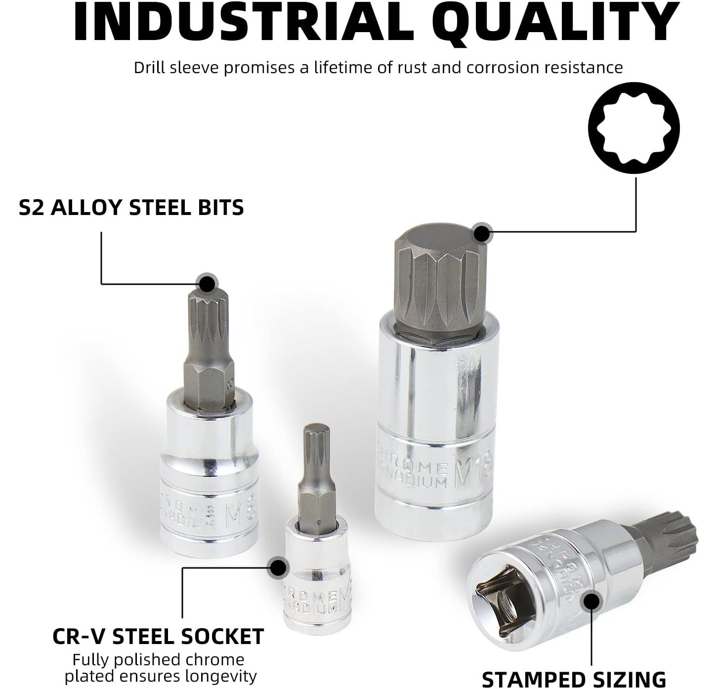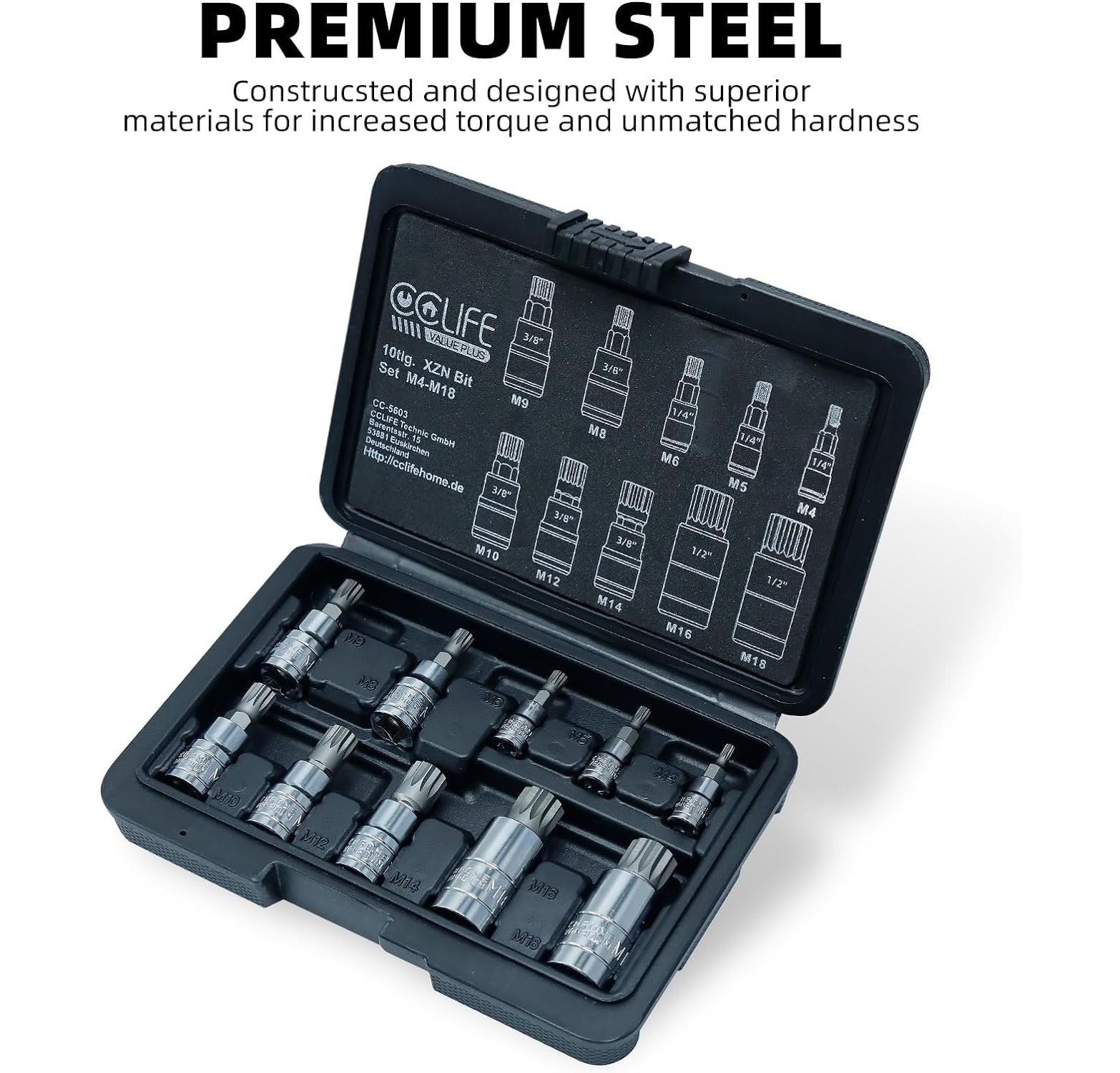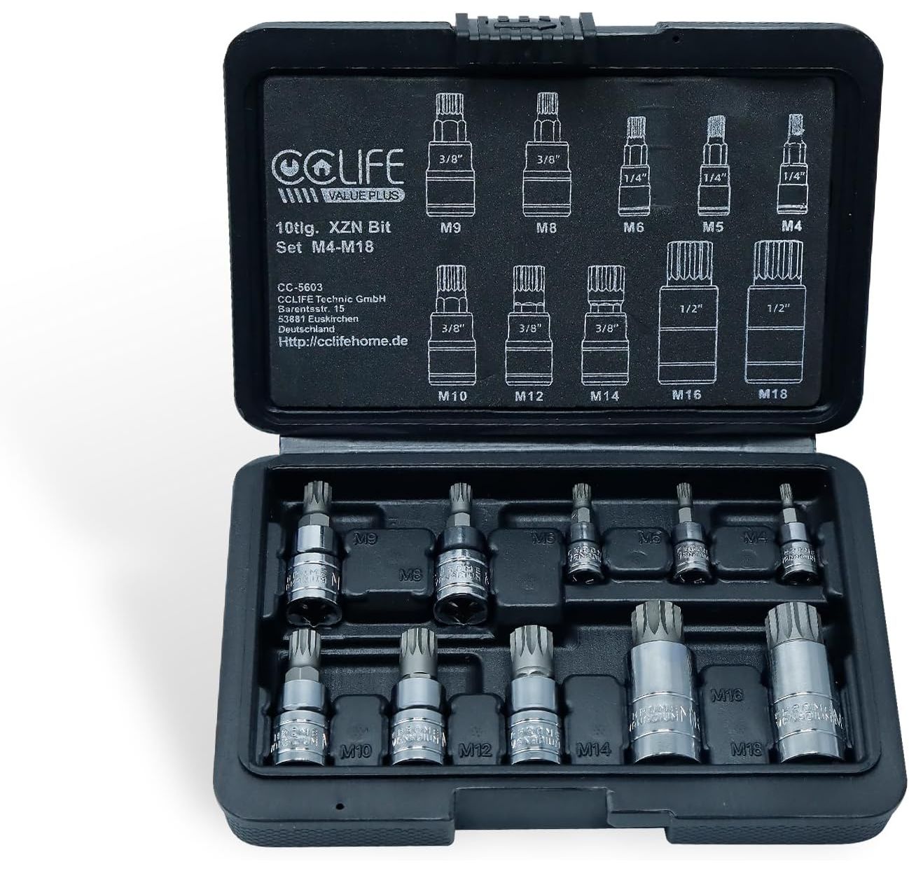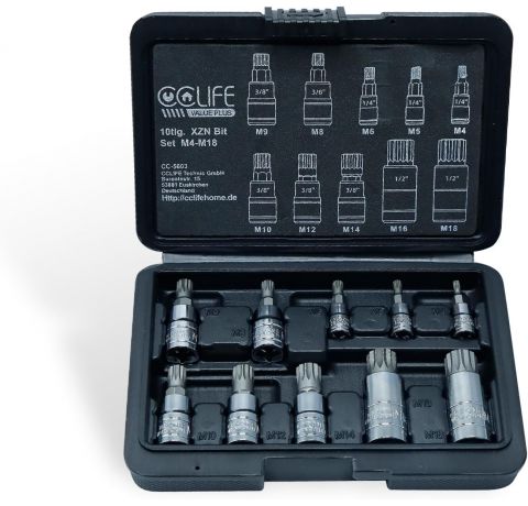 CCLIFE 10tlg Vielzahn satz vielzahn nuss M4 -M18 bit set xzn innenvielzahn, S2 Legierungsstahl stecknuss bitsatz