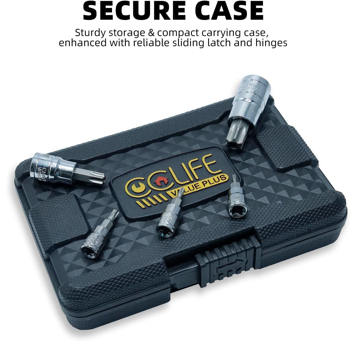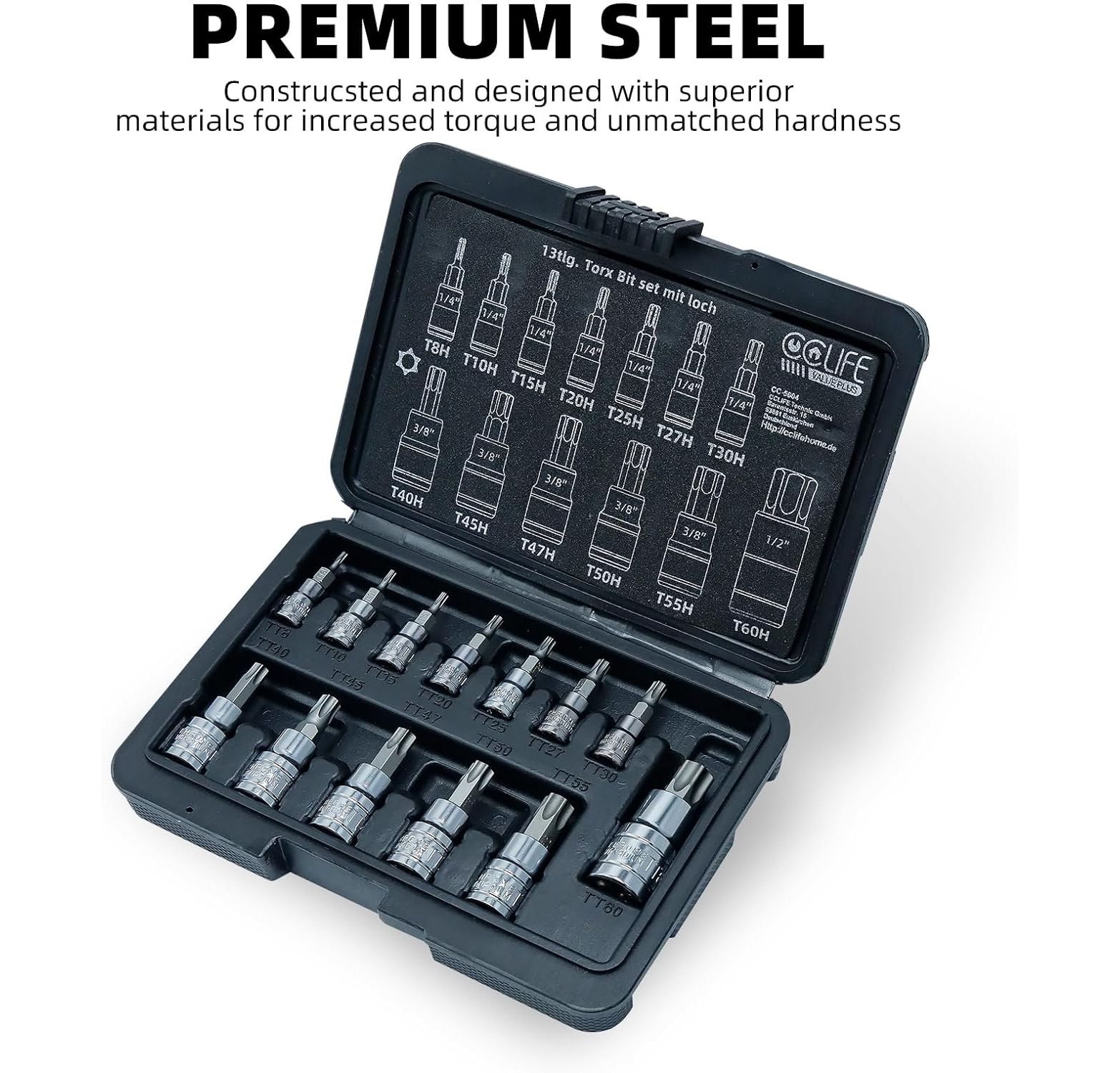 CCLIFE 13tlg Torx Bit Steckschlüsselsatz T8H - T60H bit set fur Drehmomentschlüssel und Bohrer, S2 Legierungsstahl