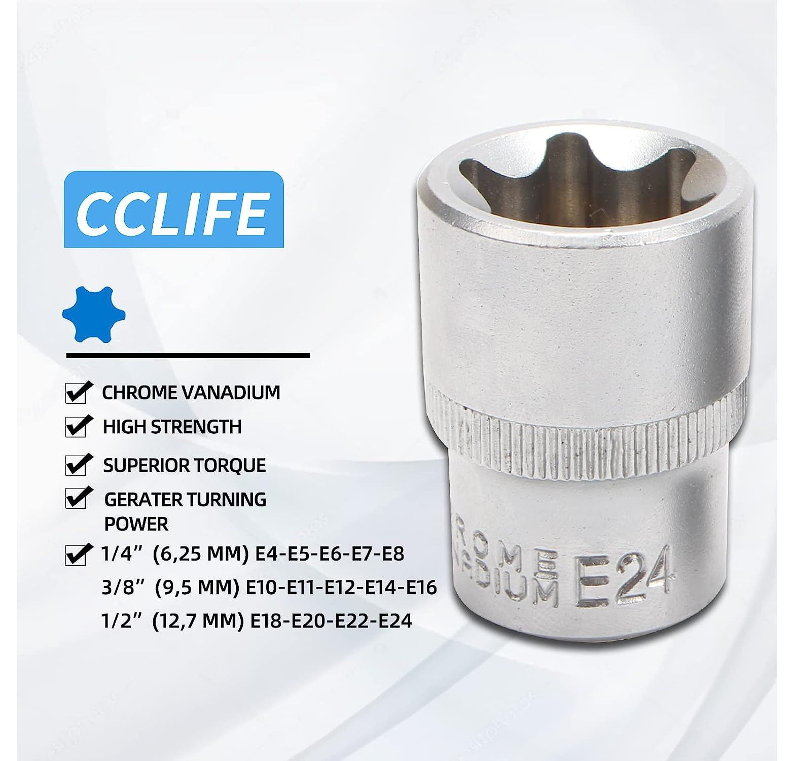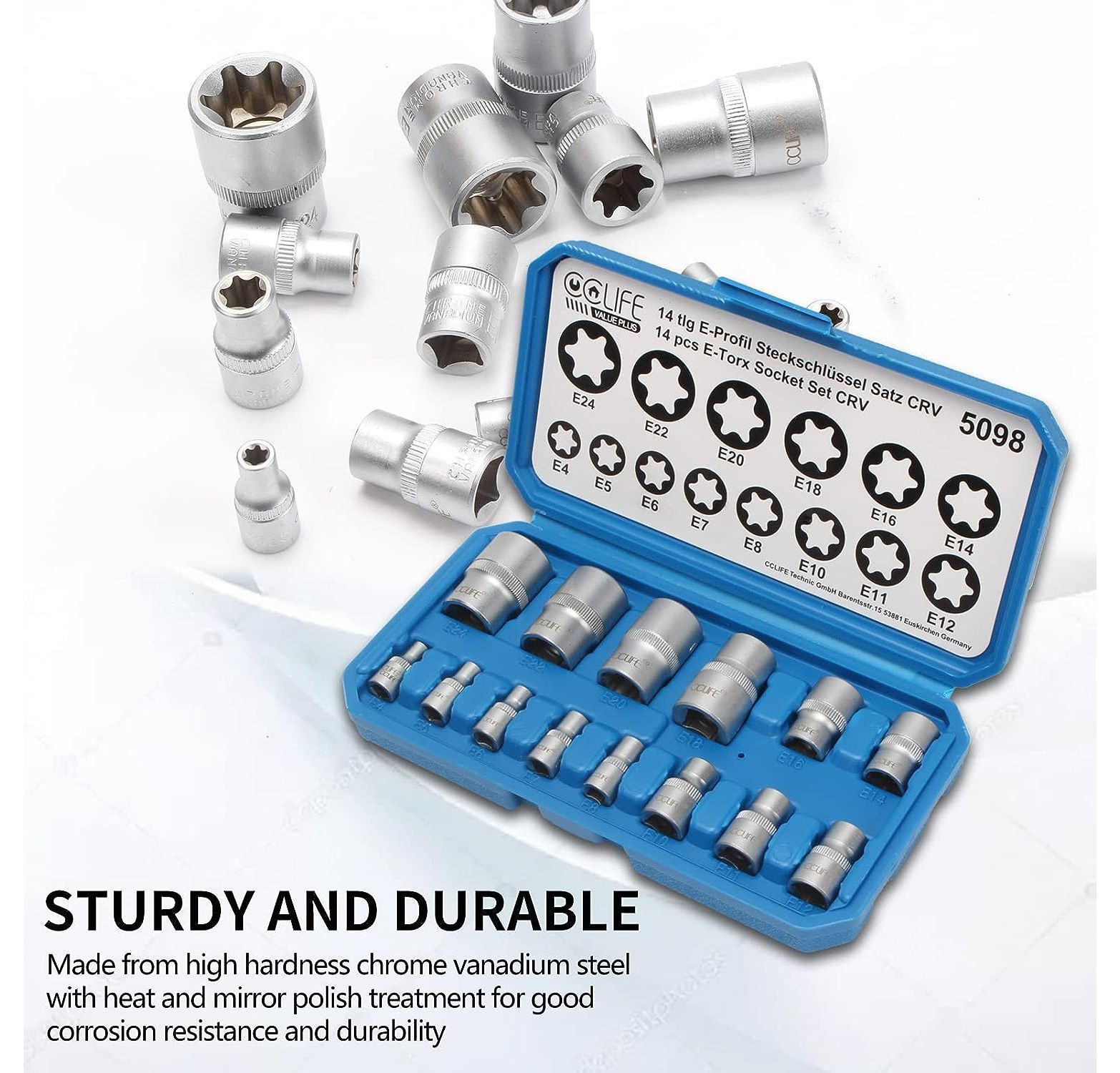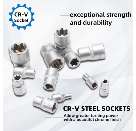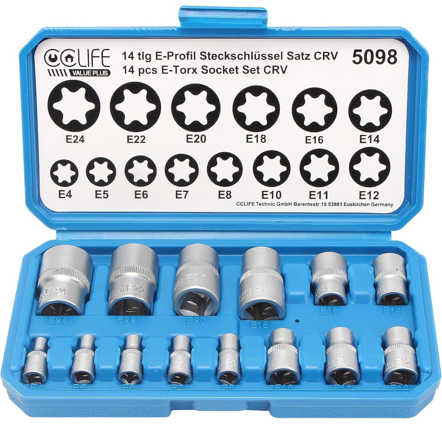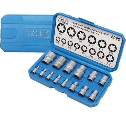 CCLIFE 14tlg Torx Nuss Set E Profil Stecknüsse Steckschlüssel Satz Außentorx E4-E24 1/4 3/8 1/2 Zoll Steckschlüsseleinsätze