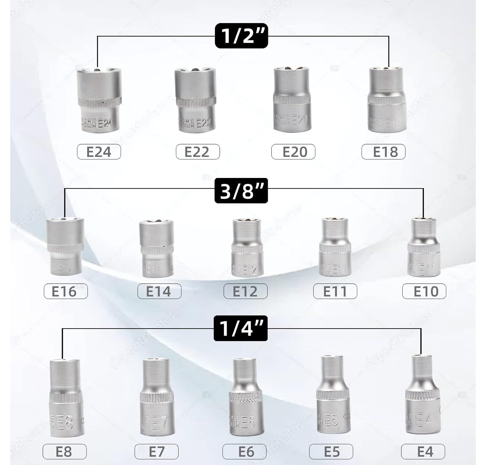 - 4 Nüsse 1/2 zoll (12,7 mm) E 18 - 20 - 22 - 24