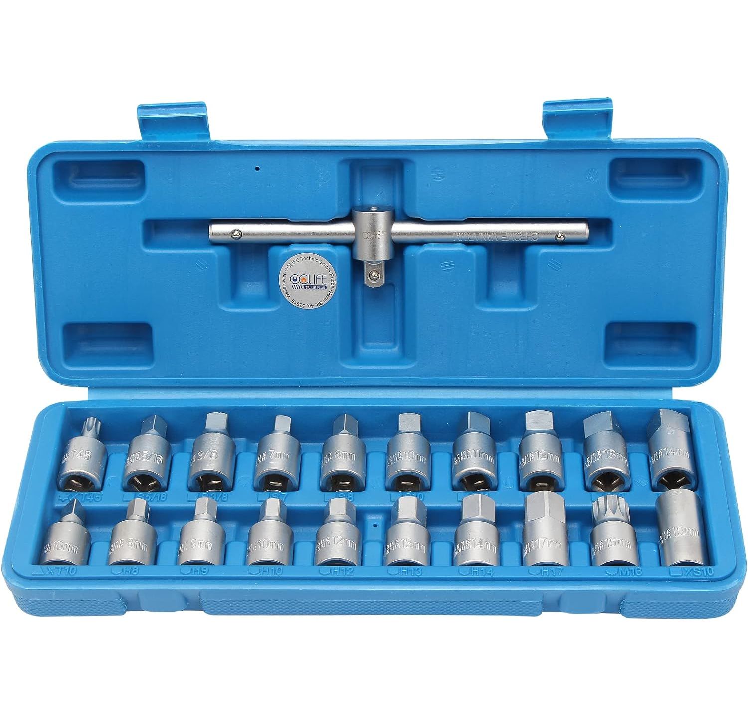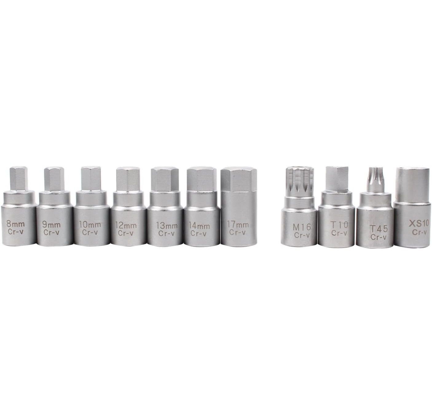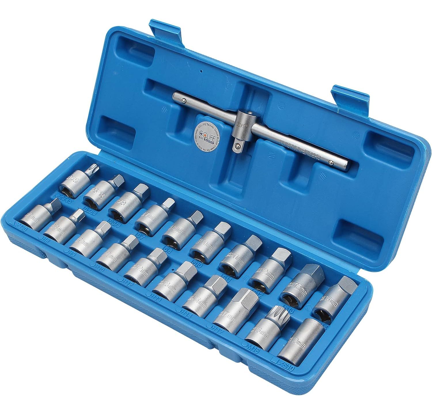 CCLIFE 21tlg 3/8" Öldienstschlüssel Öldienst Ölablassschrauben Set Ölwannen Steckschlüssel-Satz mit VW BMW usw
