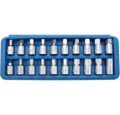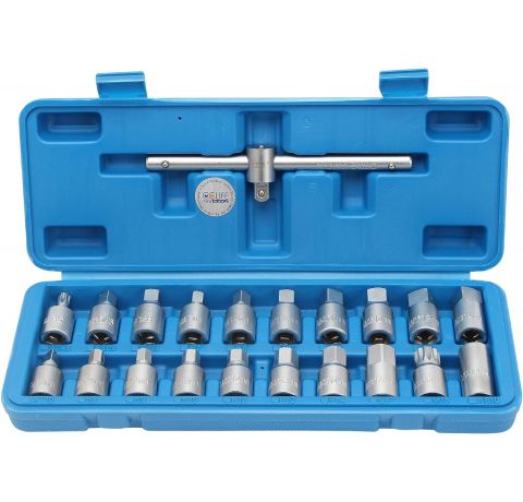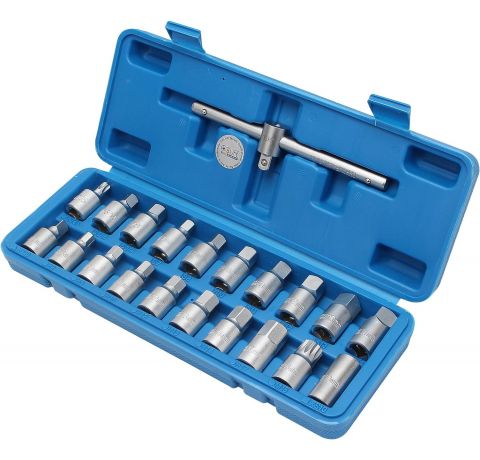 - Der Satz ist 21teilig und beinhaltet folgende Größen :6 - Kant : 8, 9, 10, 12, 13, 14, 17 (mm); 12 - Kant / Vielzahn : M16 (16mm) (Getriebe VW, Audi, Skoda);