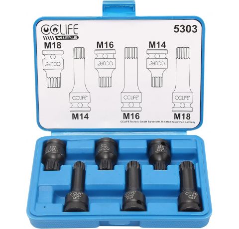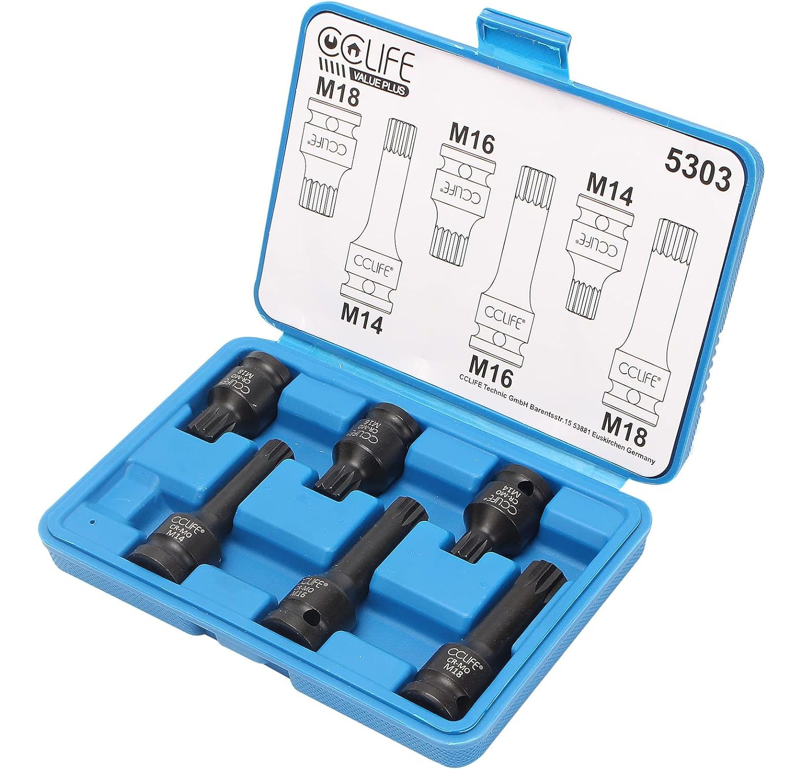 CCLIFE M14 M16 M18 Kraft XZN Bit Satz 1/2" Innen Vielzahn Nuss Steckschlüssel Schlagschrauber Bitset