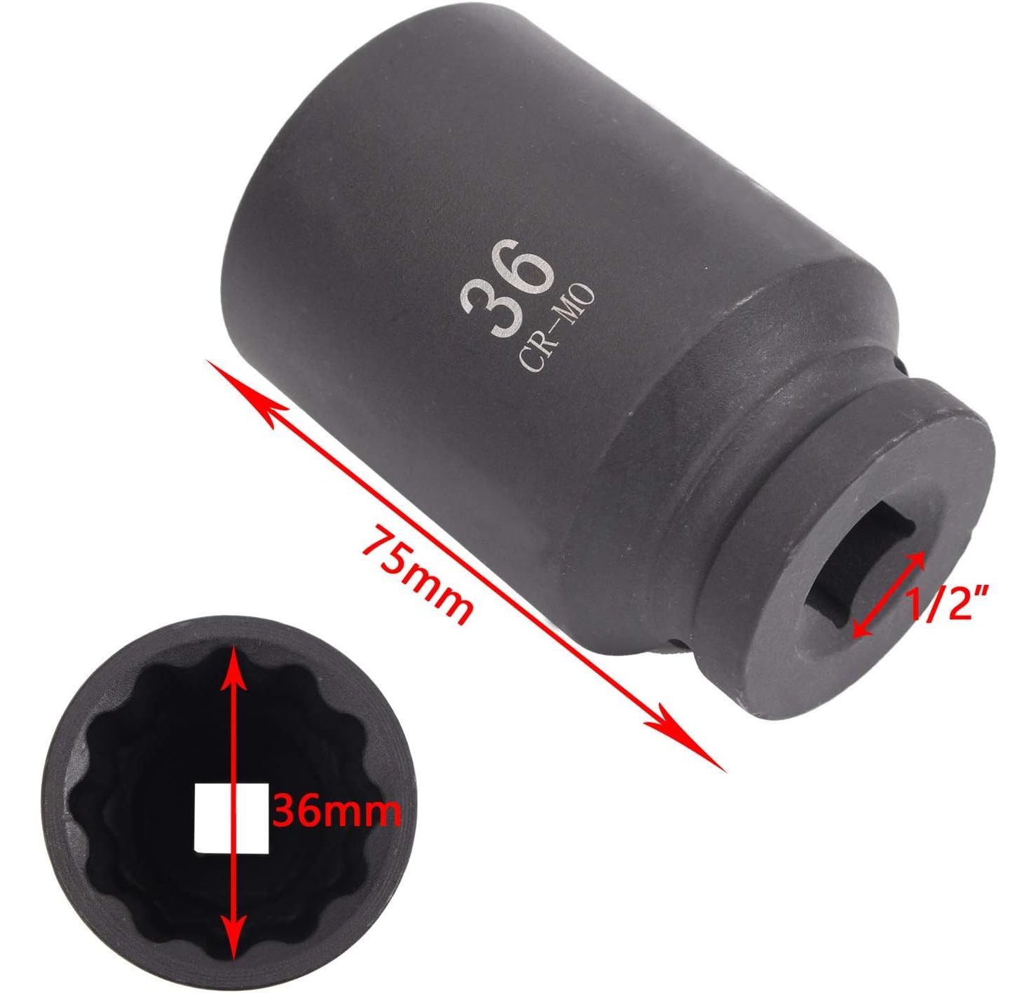 CCLIFE SW 36mm Vielzahn Nuss Schlagschrauber Antriebswellen Werkzeug Kraft Stecknuss | 12 Kant | 12,5 mm (1/2')