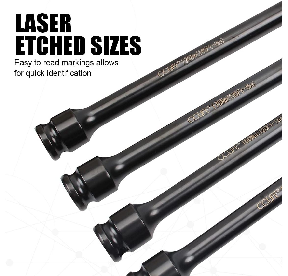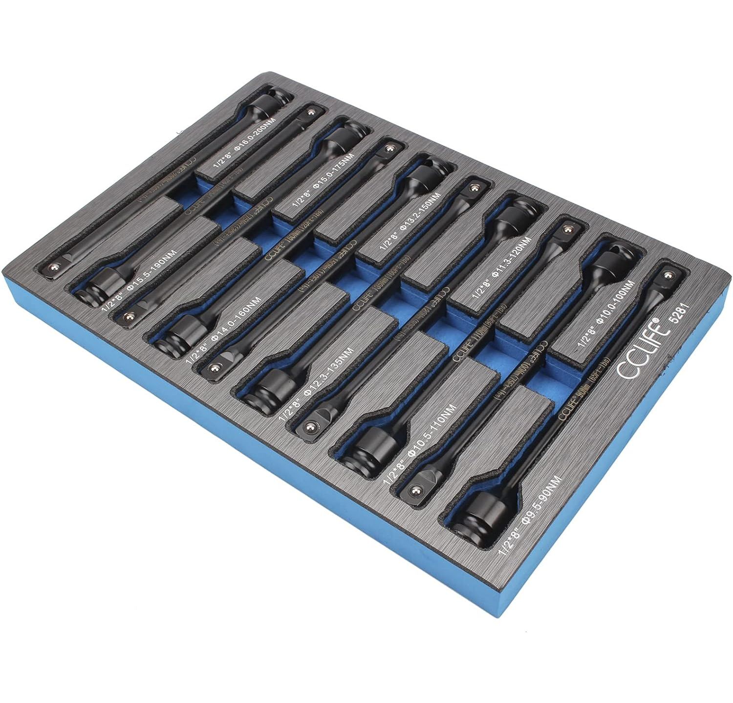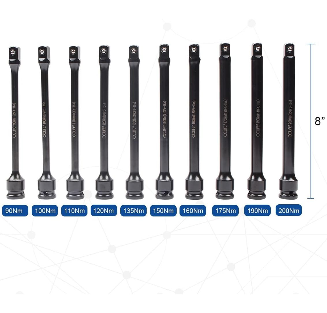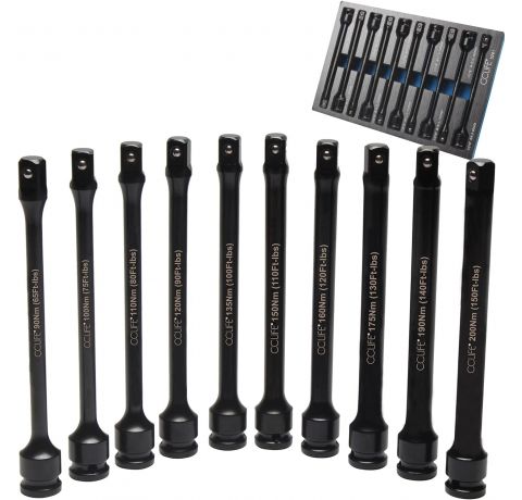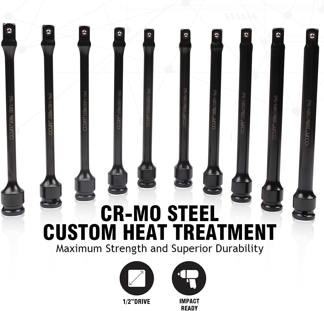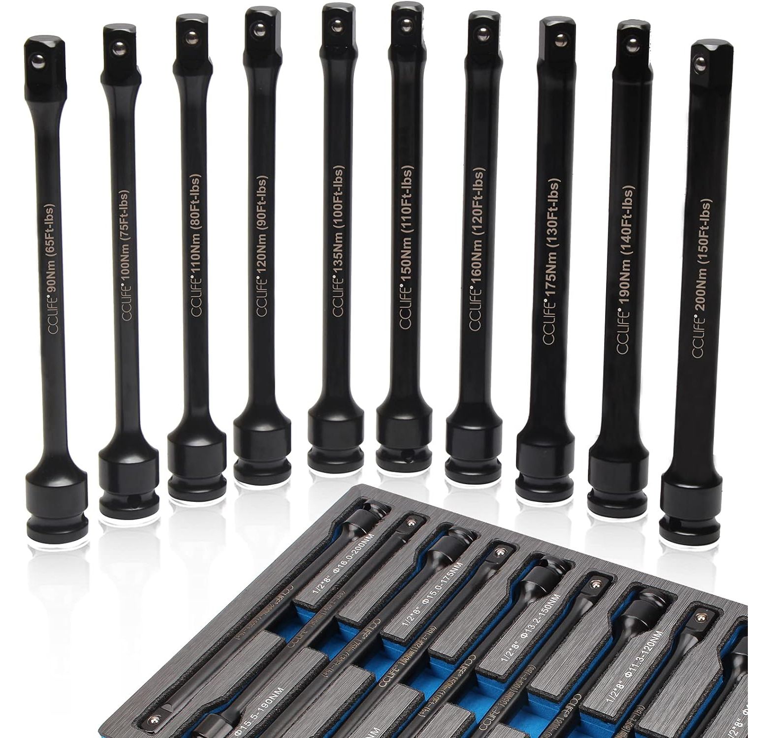 CCLIFE 10tlg 1/2" Torsionsstäbe Satz Drehmoment Torsions Verlängerung Stab für Schlagschrauber Drehmomentbegrenzer 90-200 Nm
