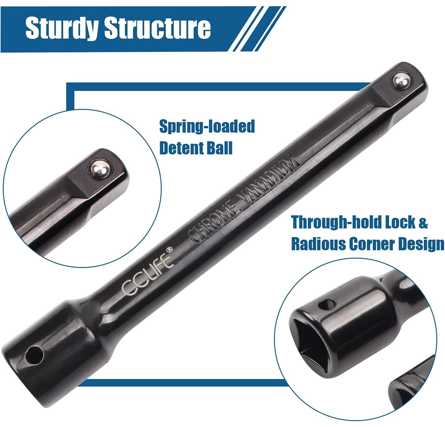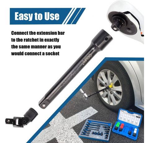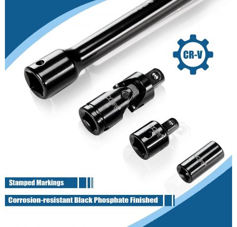- Umfangreich: Steckschlüssel Verlängerungen ist zum Erreichen von schwer erreichbaren Bereichen. Kardangelenk ist zum Einsatz an Verschraubungen mit Störkanten, schwer zugänglichen Stellen und zur Umgehung von Störkanten. Adapter dient der Verwendung von Stecknüssen mit unterschiedlichen Antriebsgrößen