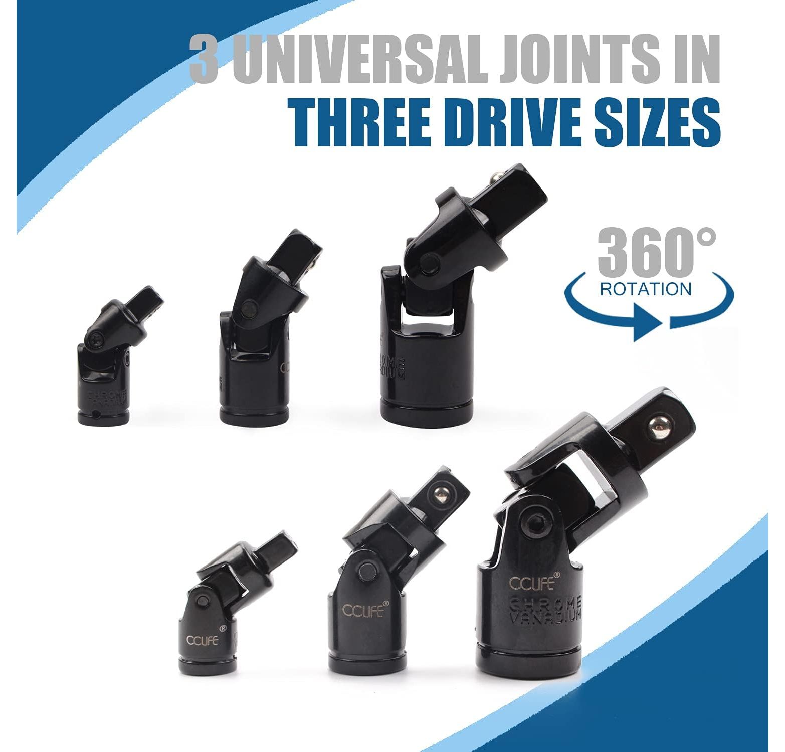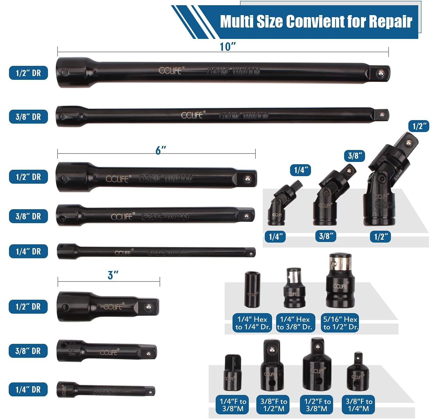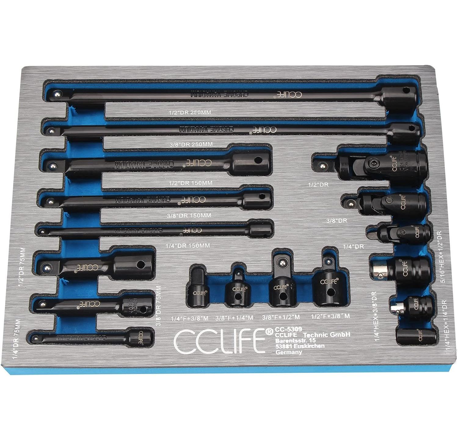 CCLIFE 18tlg Steckschlüssel Verlängerung Satz 1/4' 3/8' 1/2' Ratsche Knarre Verbindungsteile inkl. Stecknuss Adapter Kardangelenk | Cr-V