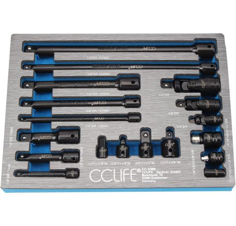 - Organisation: Alle notwendige Steckschlüssel Verbindungsteile sind in relativ werichem Schaum organisiert, ist einfach zu tragen und aufzubewahren, außerdem reduziert die Reibung beim Transpotieren, deshalb hält die Artikel für eine lange Lebensdauer in gutem Zustand.