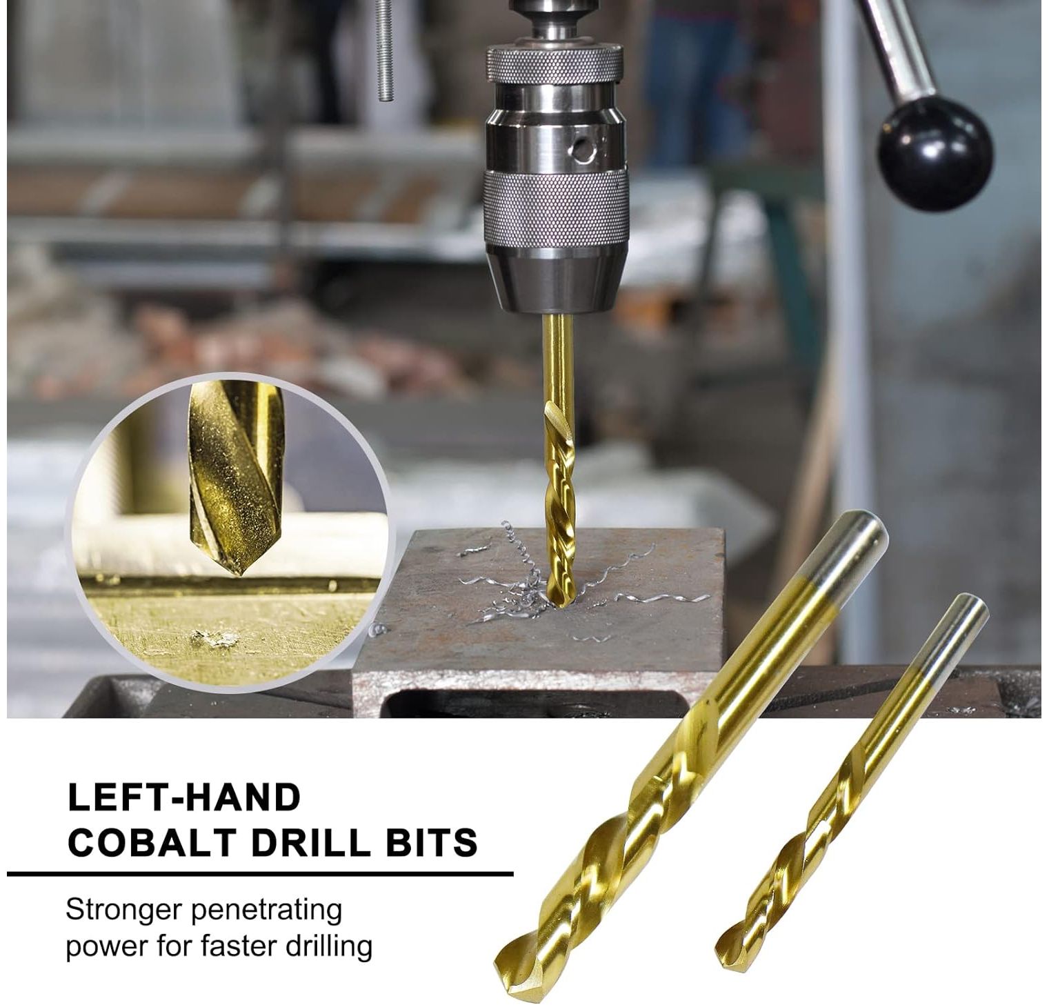 - 16 Stücke Bohrer aus Schnellarbeitsstahl Größen:5/64”, 7/64”, 1/8”, 5/32”, 3/16”, 7/32”, 1/4”, 9/32”, 19/64”, 5/16”, 11/32”, 3/8”, 13/32”, 7/16”, 15/32”, 1/2”