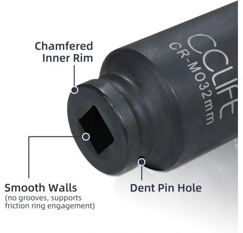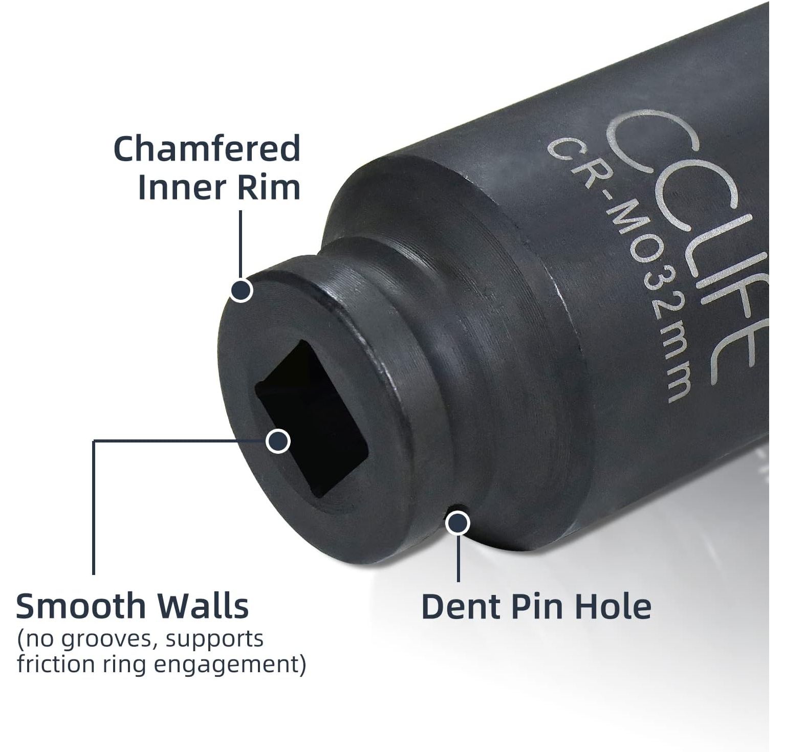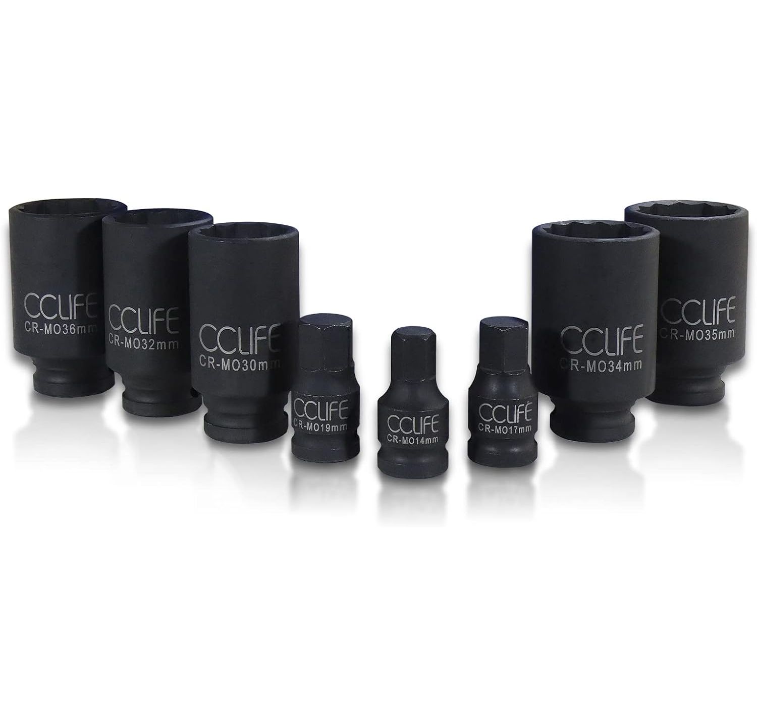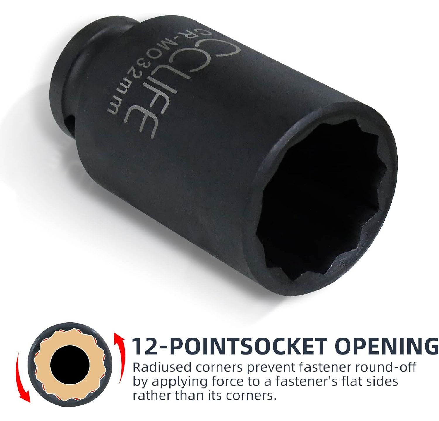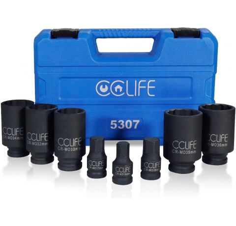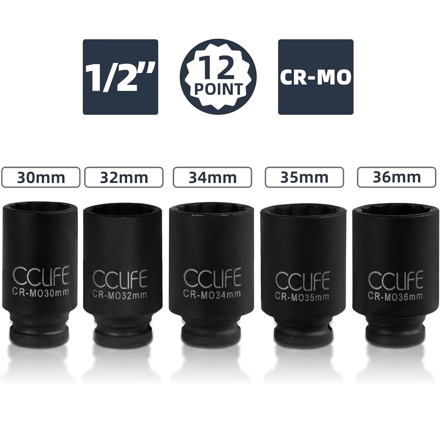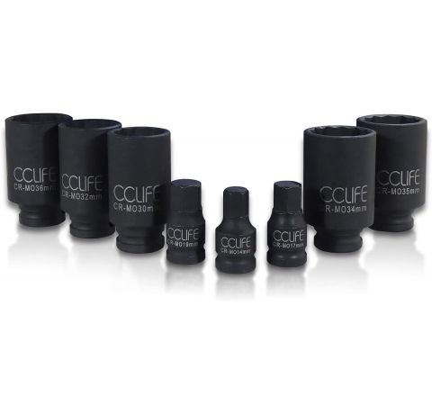 CCLIFE 8tlg Vielzahn Nuss Antriebswellen Werkzeug Kraft Stecknuss SW 30 32 34 35 36 mm | 12 Kant | 12,5 mm (1/2")