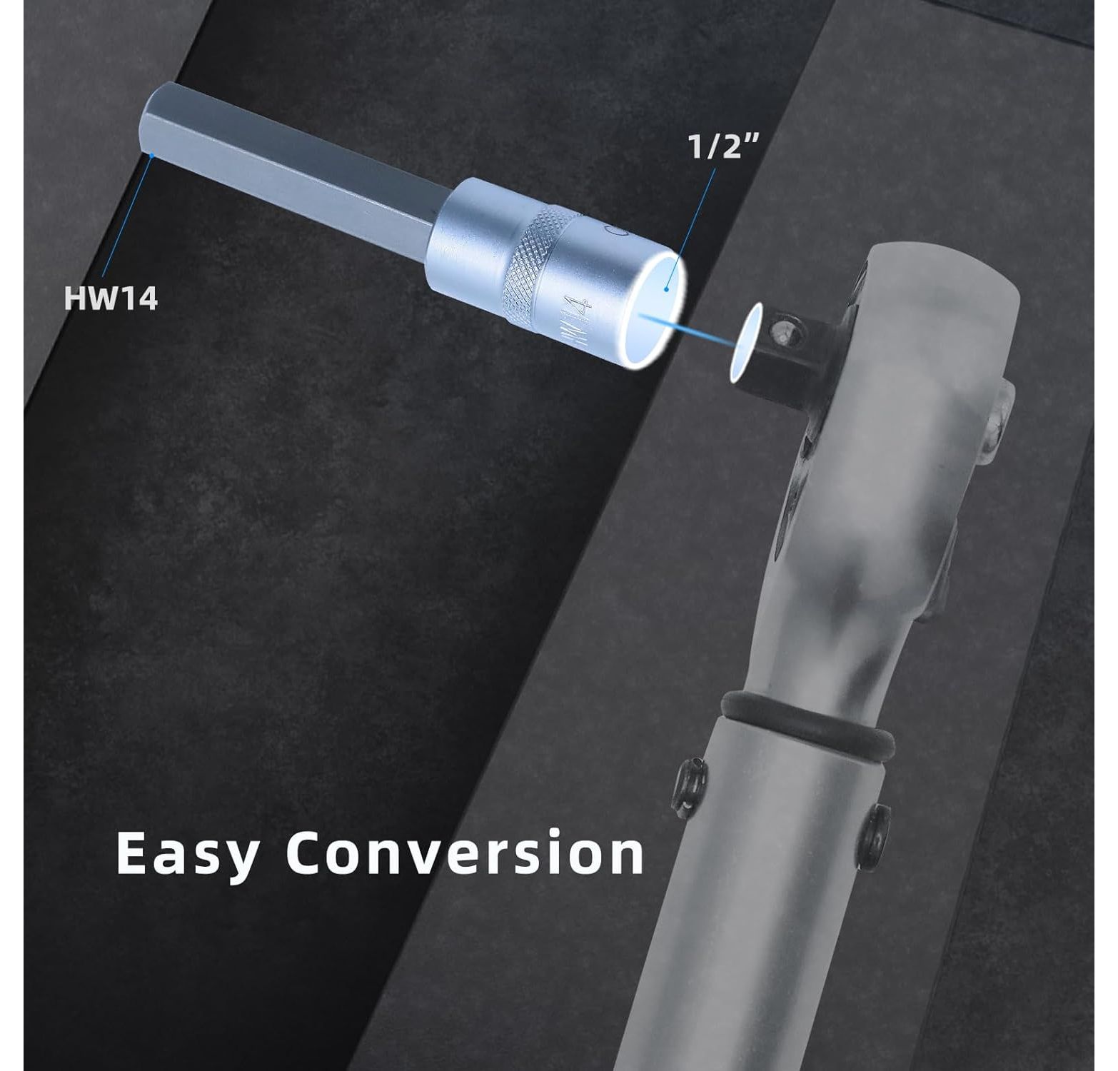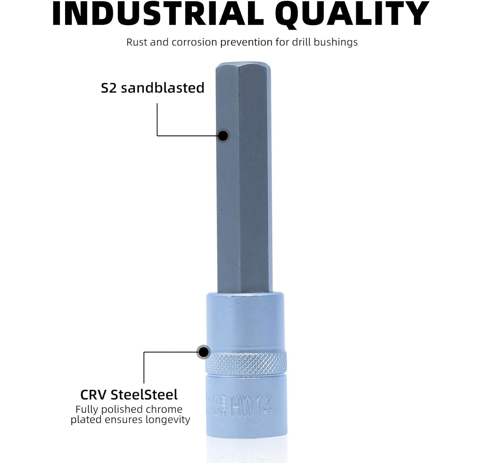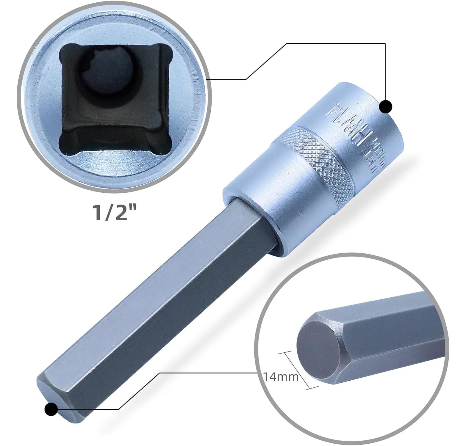 CCLIFE Innensechskant Einsatz 14mm, 1/2" HEX Bit Socket, Sechseckige Steckschlüssel Material CRV, 100mm Länge