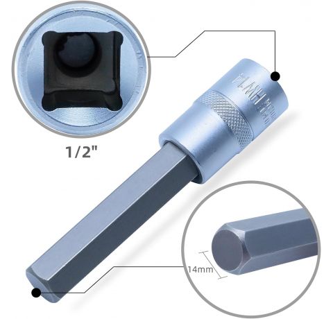 Mit einem Innensechskant von 14 mm Größe ist er ideal für präzise Arbeiten.