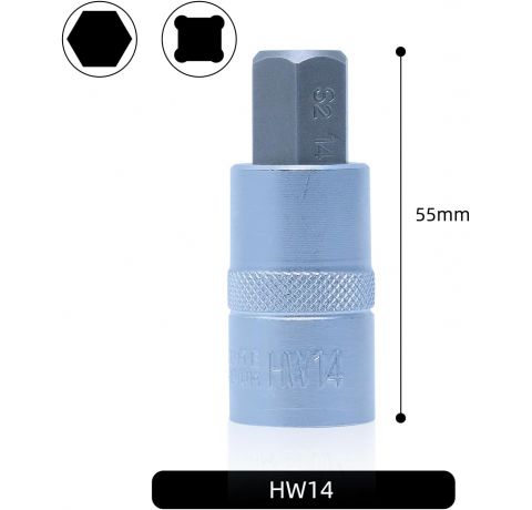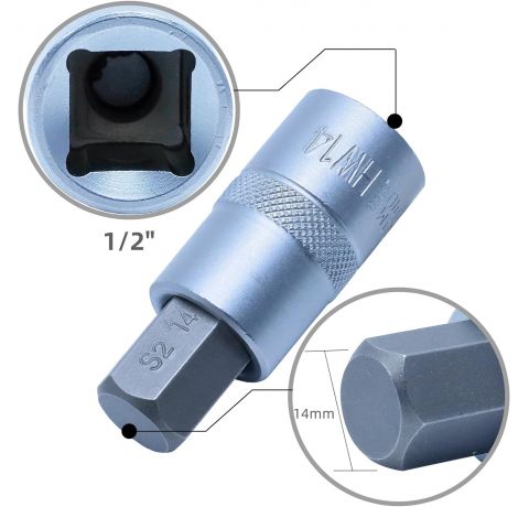 Mit einem Innensechskant von 14 mm Größe ist er ideal für präzise Arbeiten.
