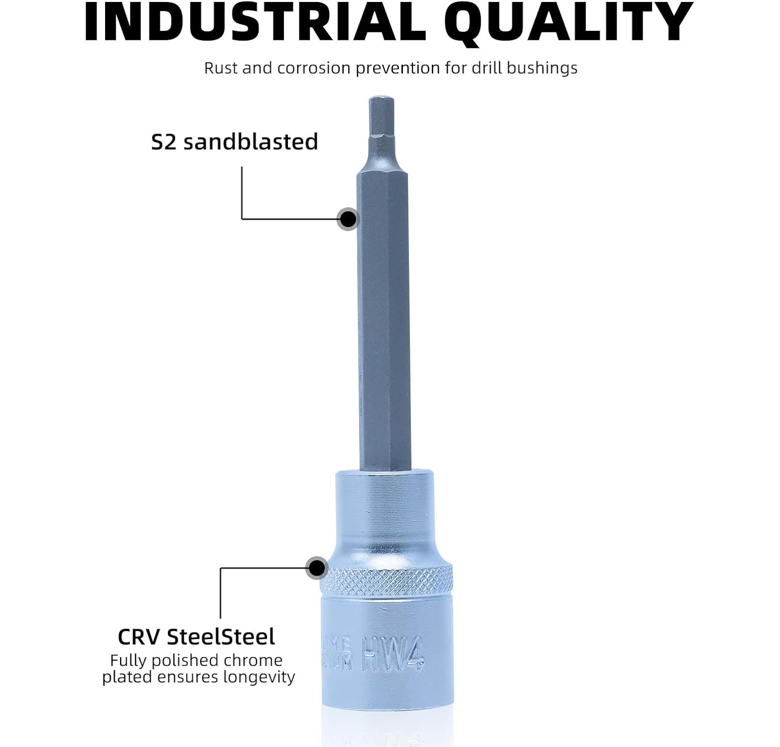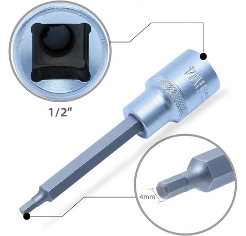 CCLIFE Innensechskant Einsatz 4mm, 1/2" HEX Bit Socket, Sechseckige Steckschlüssel Material CRV, 100mm Länge