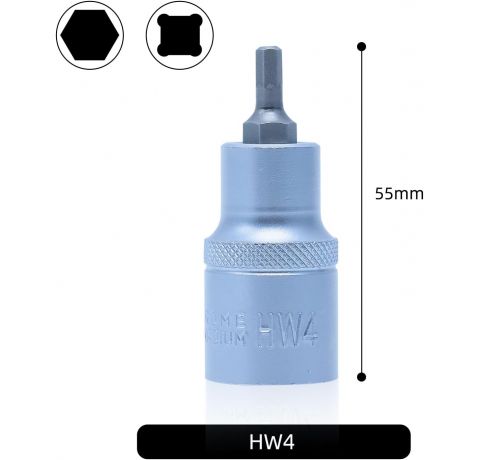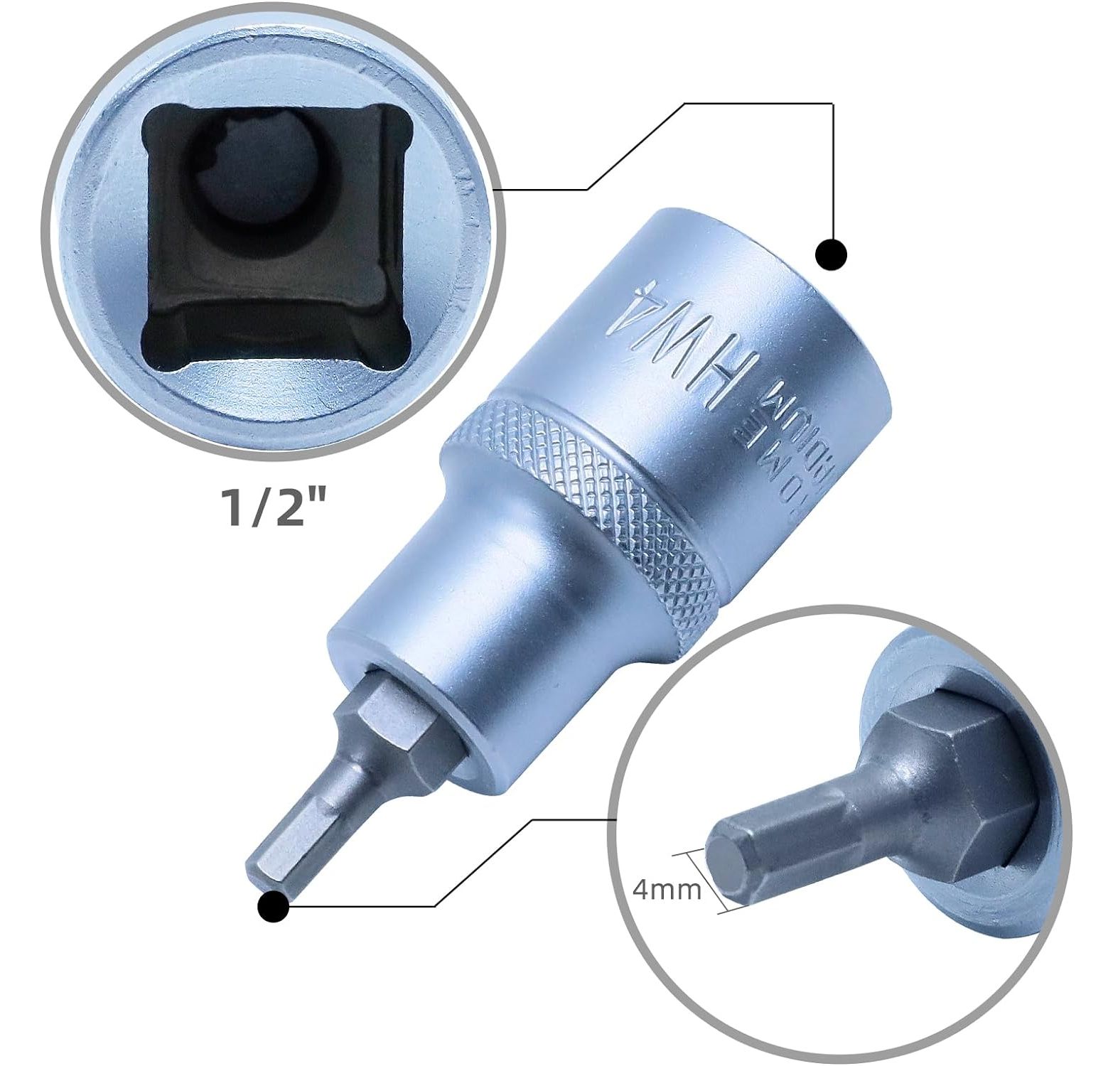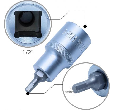 CCLIFE Innensechskant Einsatz 4mm, 1/2" HEX Bit Socket, Sechseckige Steckschlüssel Material CRV, 55mm Länge
