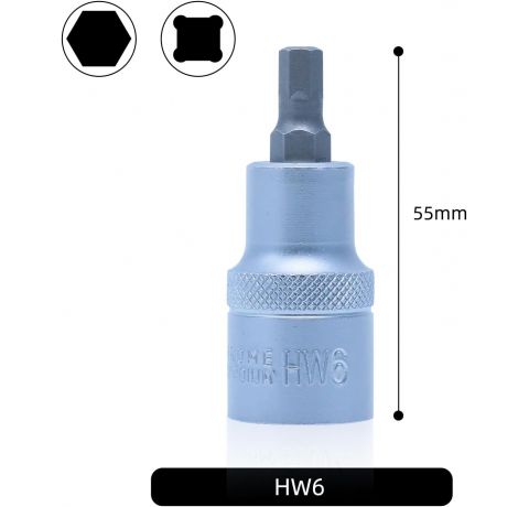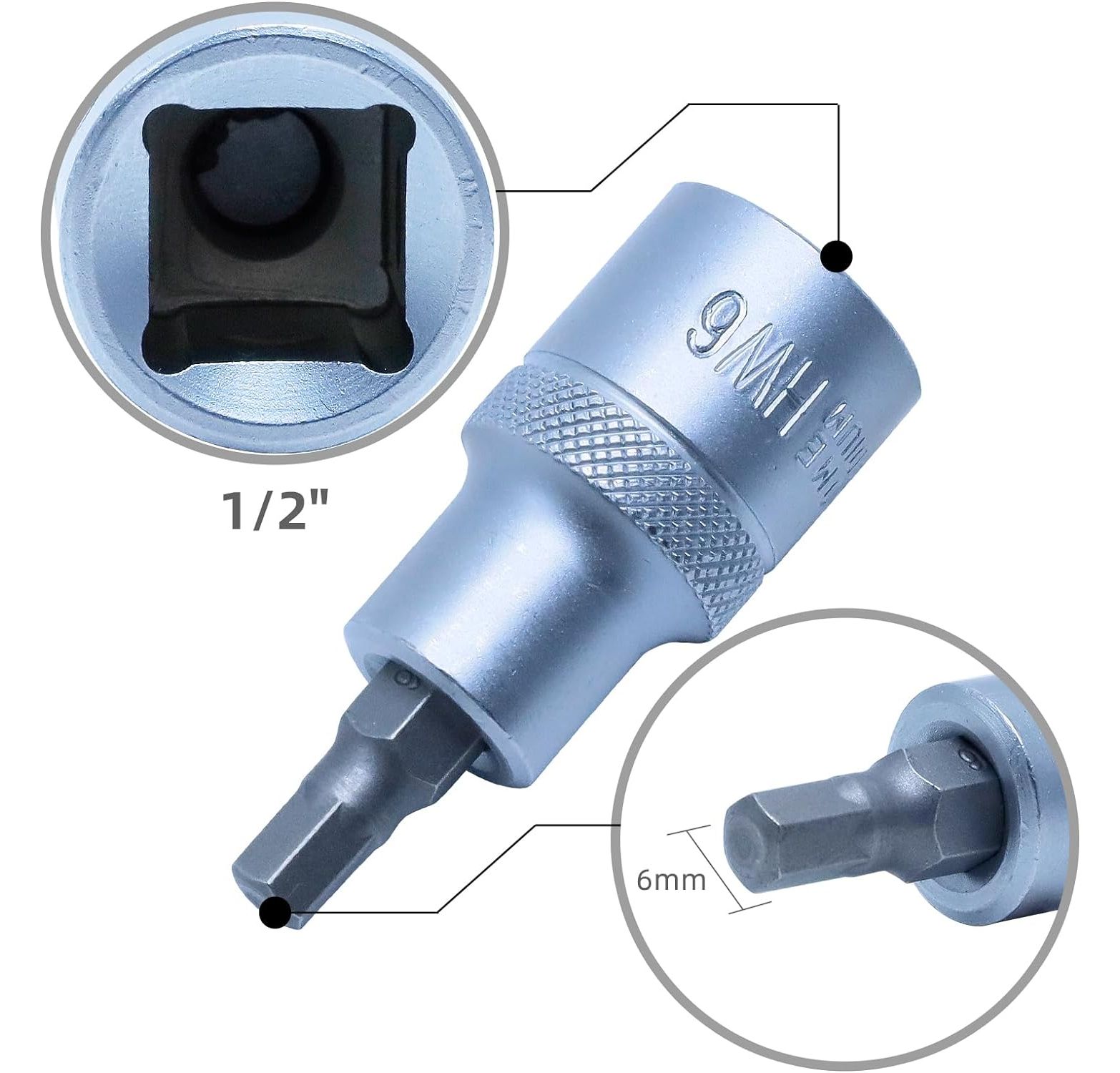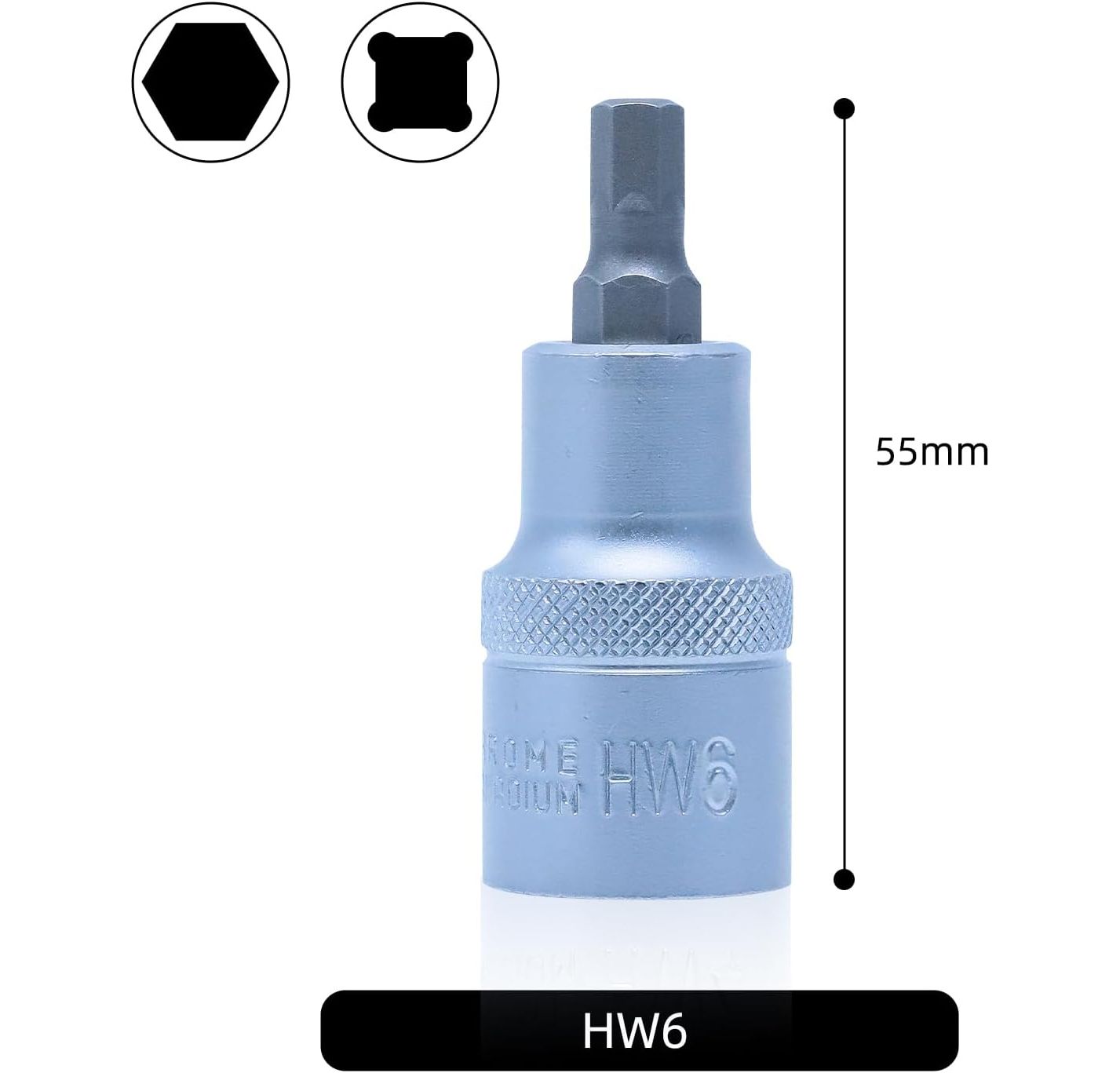 CCLIFE Innensechskant Einsatz 6mm, 1/2" HEX Bit Socket, Sechseckige Steckschlüssel Material CRV, 55mm Länge